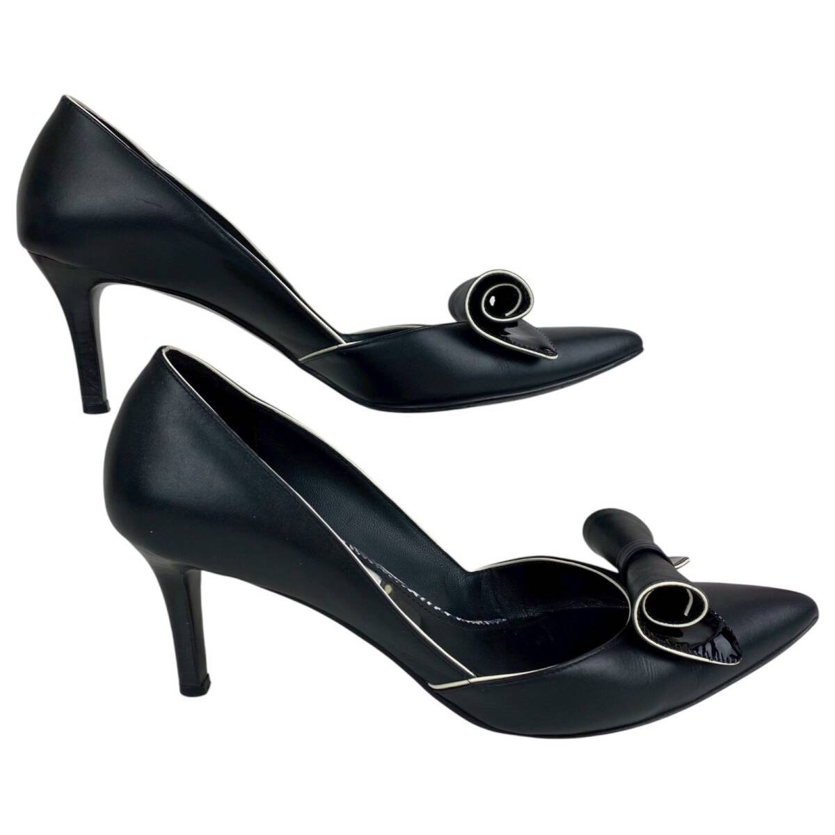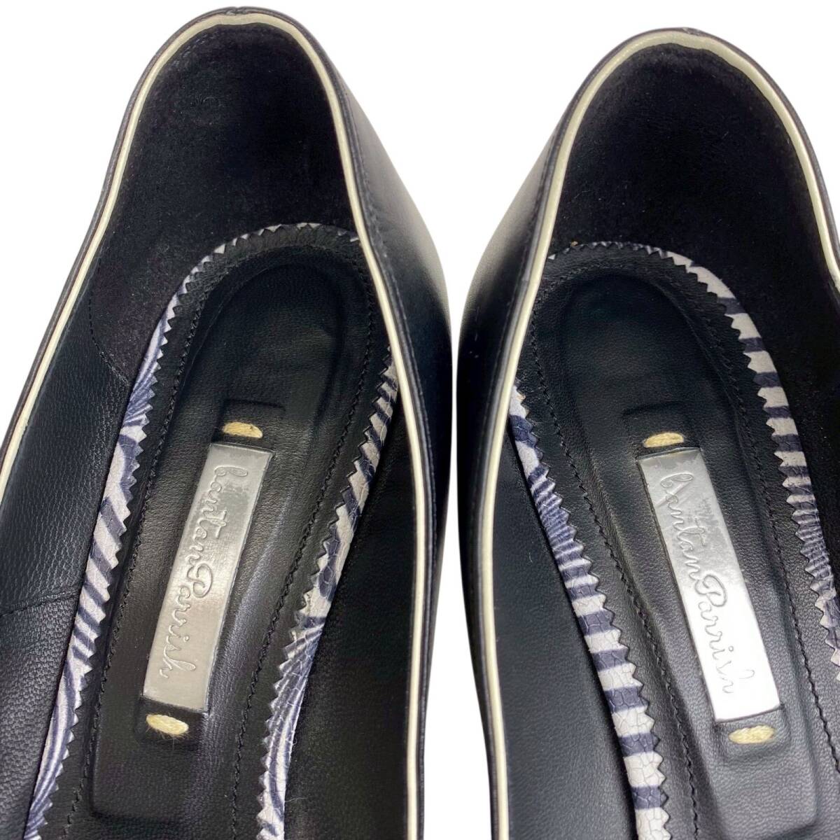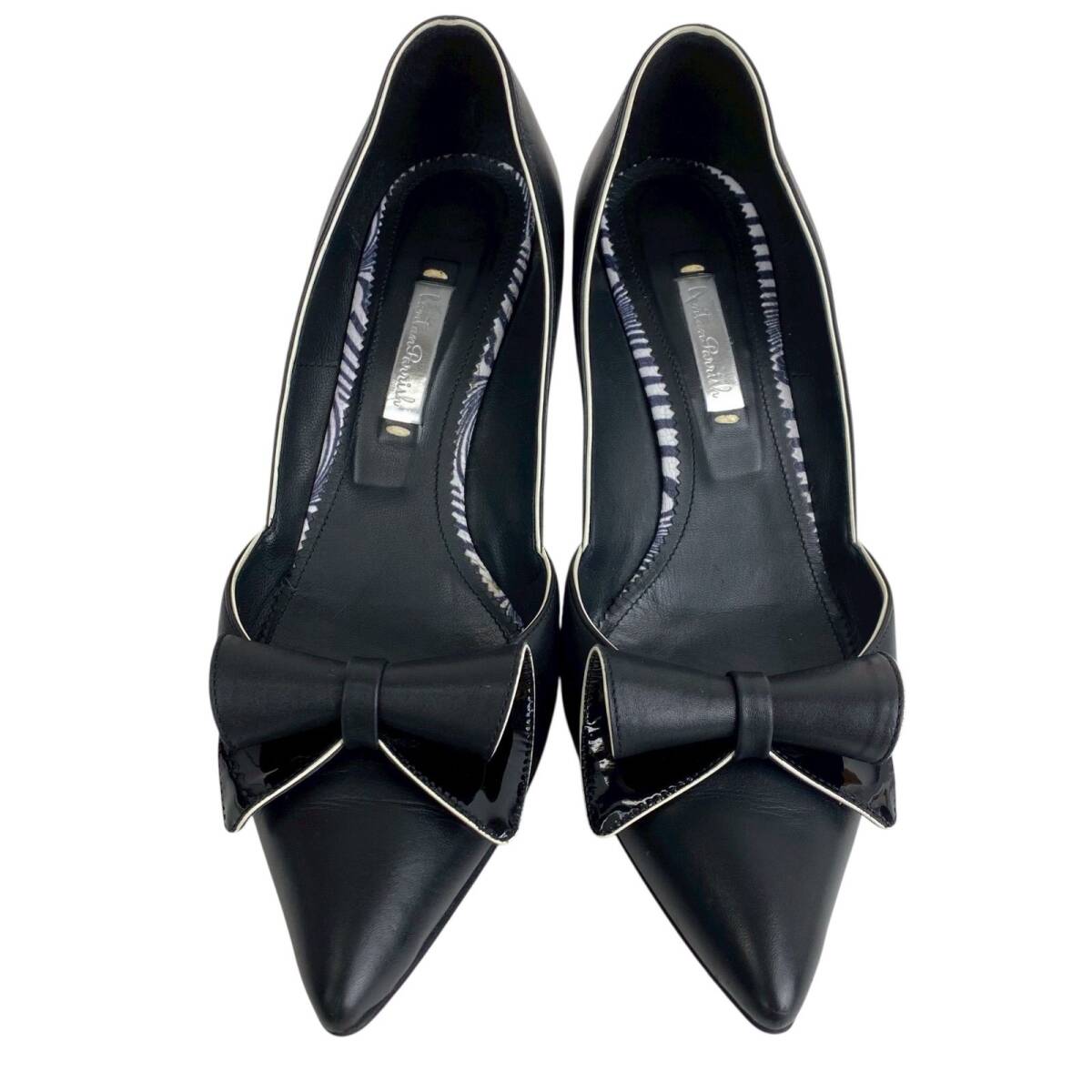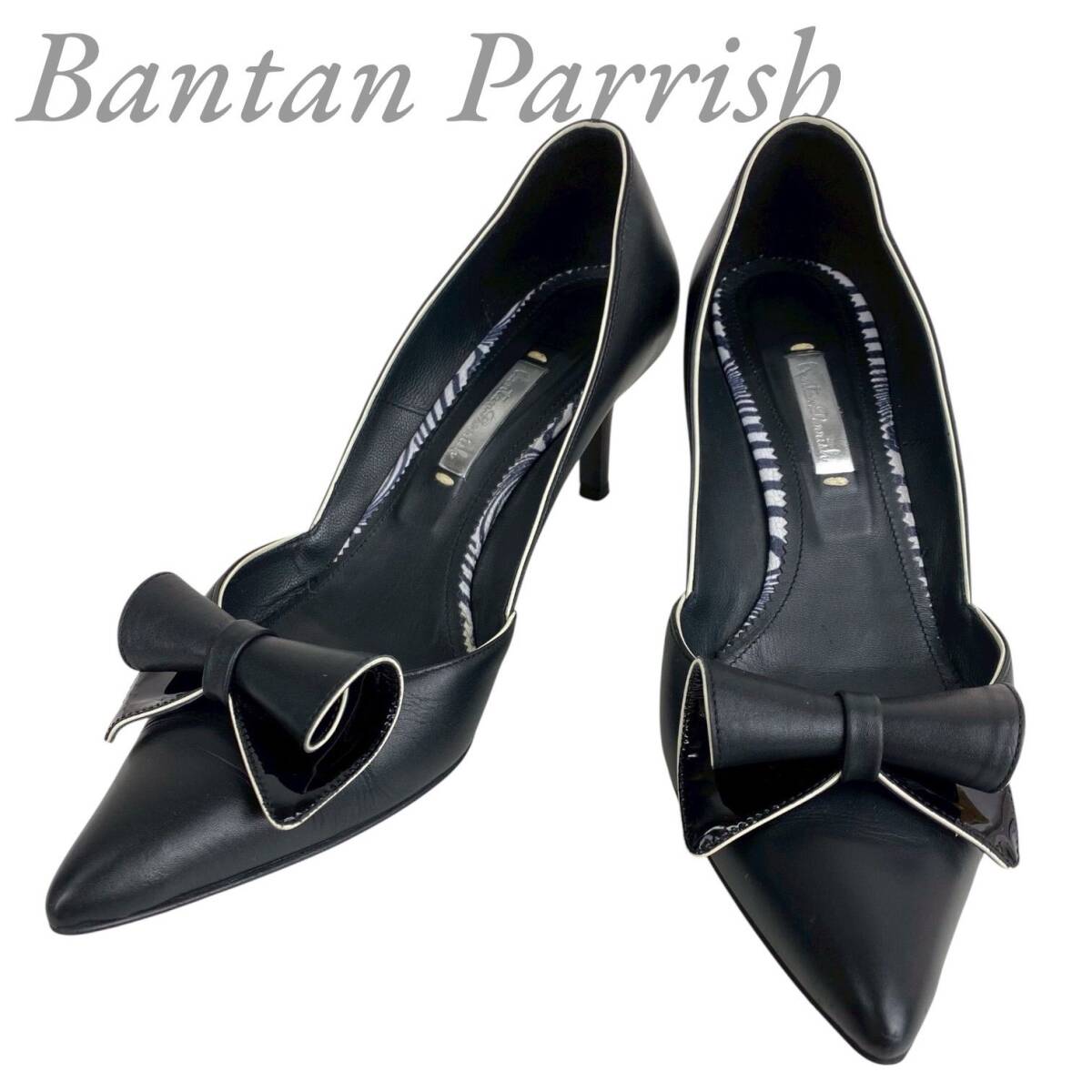 【B4117】 Bantan Parrish バンタンパリッシュ パンプス レザー ブラック ピンヒール リボン ポインテッドトゥ 日本製
