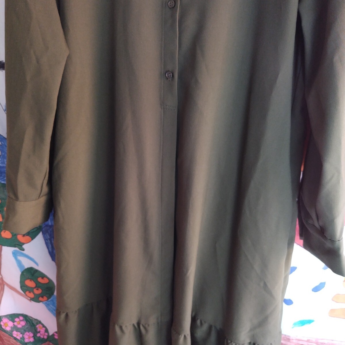 千趣会 レディースLLサイズ シャツワンピース 体型カバー 横幅ゆったりけ217サイズ着丈120身幅50肩幅48袖丈52 長袖新品未使用