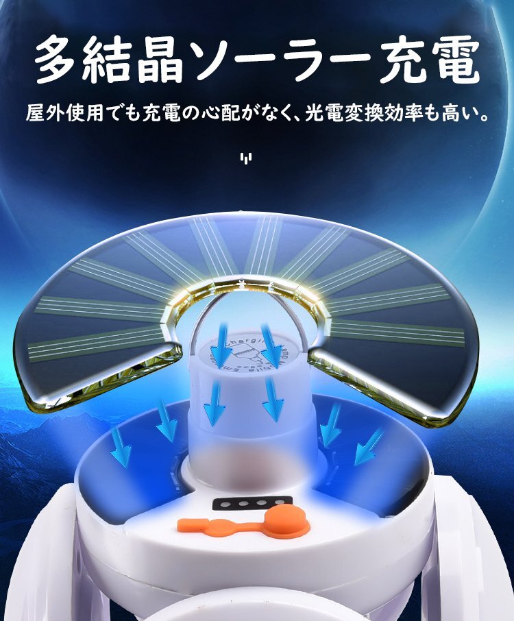 ■ 多結晶シリコンソーラー充電を採用し、太陽光がある限り充電可能、光電変換効率が高い