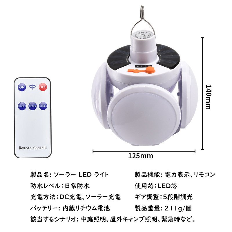 ■ 遠隔操作が可能なソーラーLEDライトで、庭園照明、屋外キャンプ照明、非常用などに最適です。