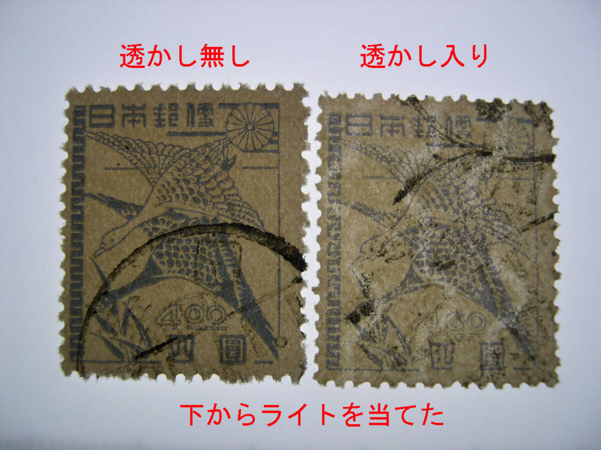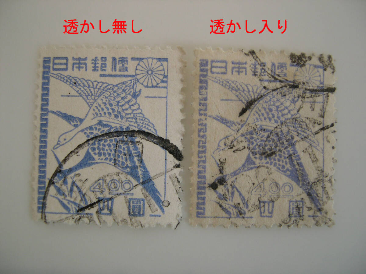 W232 日本普通切手 北斎「落雁図」 すかし無し&すかし有りセット 使用済み