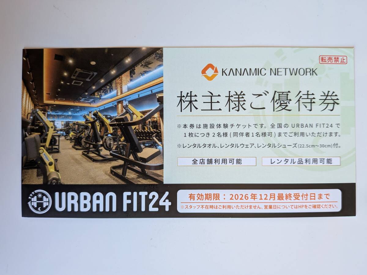即決!送料無料!カナミックネットワーク 株主優待 券 URBANFIT24 施設体験チケット 1枚 アーバンフィット24 2025.12月最終営業日迄
