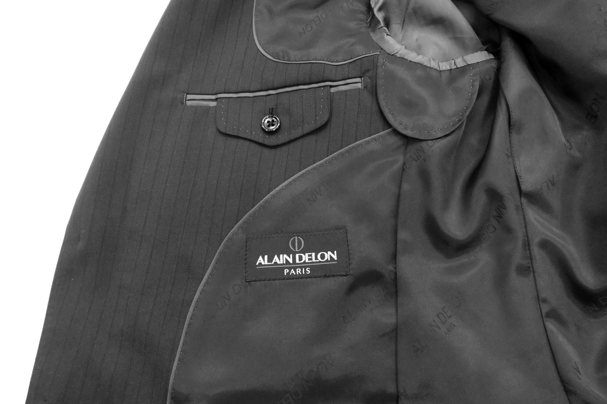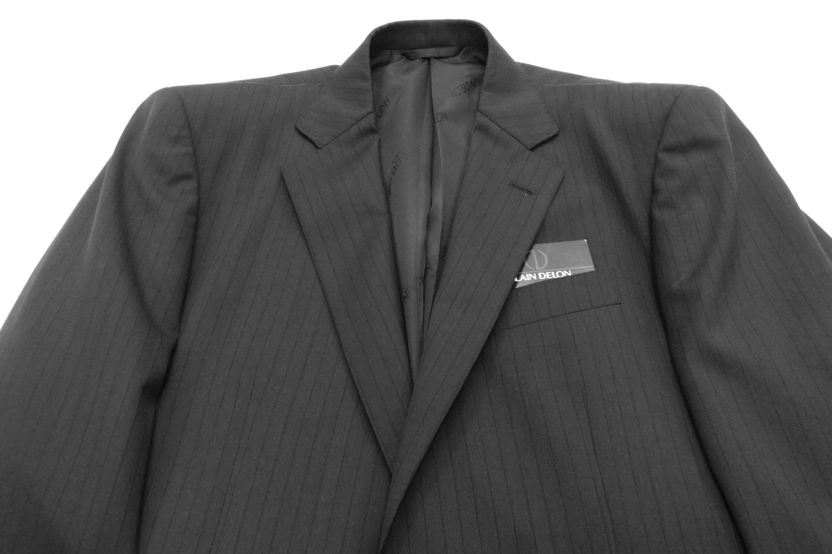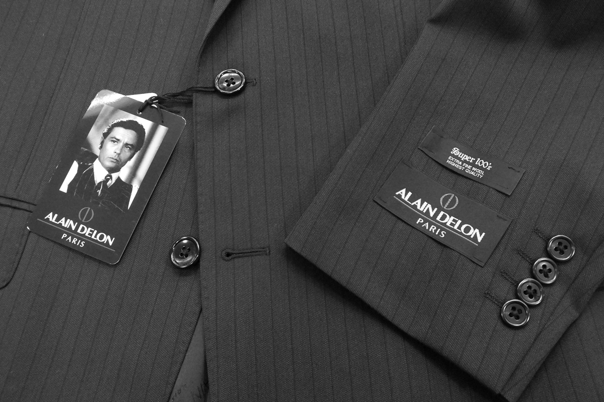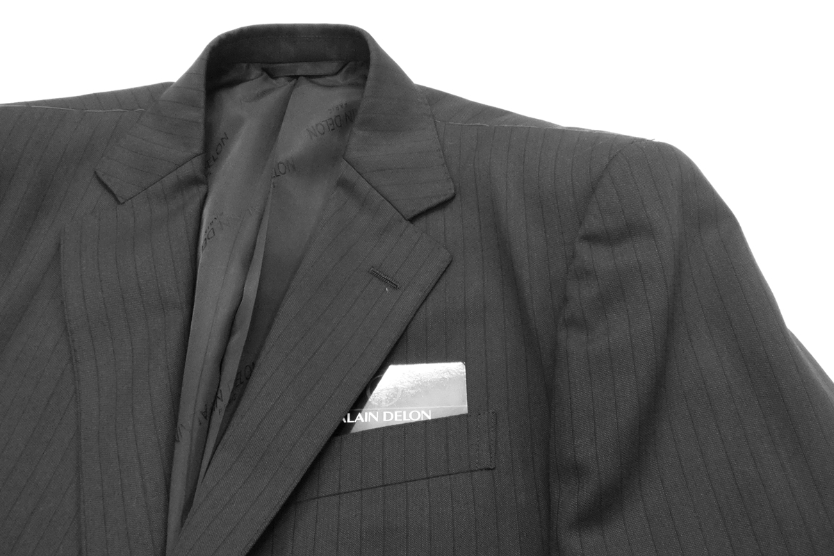 ある意味僕は もっと幸福な人間になっていたかもしれない” 1957年に映画界にデビューして以来、今日までフランス映画に君臨してきた名優アランドロンが監修した高級スーツ。 特色 ・全体にややゆとりのある着心地の良いスーツです。 ・総裏仕立て・本台場・汗止め ・ブランドロゴ入り高級裏地使用。 ・高級品の証AMFステッチ ・SUPER100 細番手高級素材使用 サイズ:三元表示 AB5【胸囲96-ウエスト86-身長170】 上着ベンツ:サイドベンツ 上着胴裏:総裏仕様 袖釦:4個 色:チャコールグレー 柄:10MMのストライプ 表素材:毛99/ポリエステル1 裏素材:キュプラー50/ポリエステル50 (ブランドロゴ入り) 原産国:中国製 詳細な寸法 AB5(胸囲96-ウエスト86-身長170) 上着部分:胸囲115cm/胴廻り101cm/上着丈74cm-肩幅48.3cm-袖丈58.5cm スラックス部分:ウエスト86cm-股上26cm-渡り幅34.5-膝幅24.8cm-裾幅22.7cm | ||||