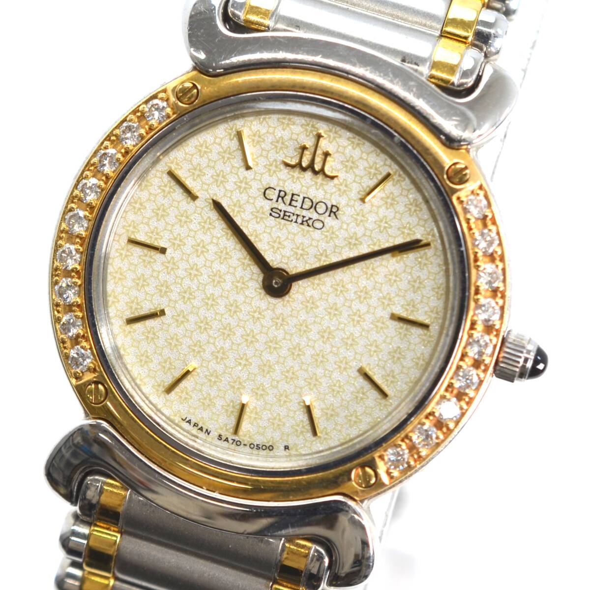 H.MP 1円スタート セイコー SEIKO クレドール 5A70-0210 SS K18YG YG コンビ ダイヤモンドベゼル 腕時計 レディース クォーツ