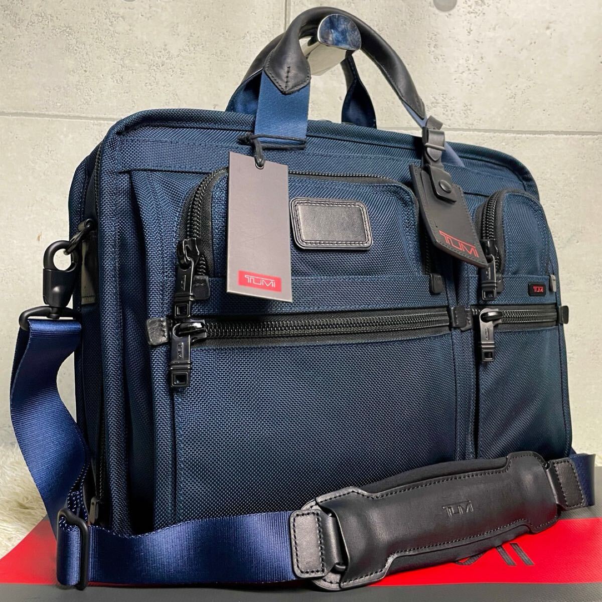 [激レア 人気色]美品 TUMI トゥミ SHIPS別注 2way ALPHA メンズ ビジネスバッグ ブリーフケース A4+PC可 大容量 牛革+バリスティック 紺
