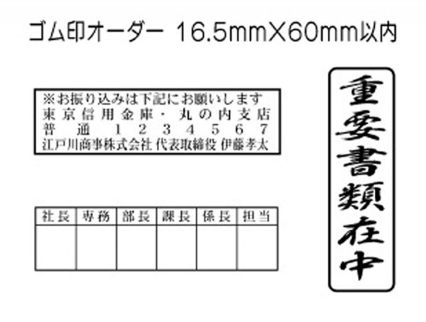 16.5mm×60mm(印面サイズ)以内 フリーデザインのゴム印・スタンプを作成致します