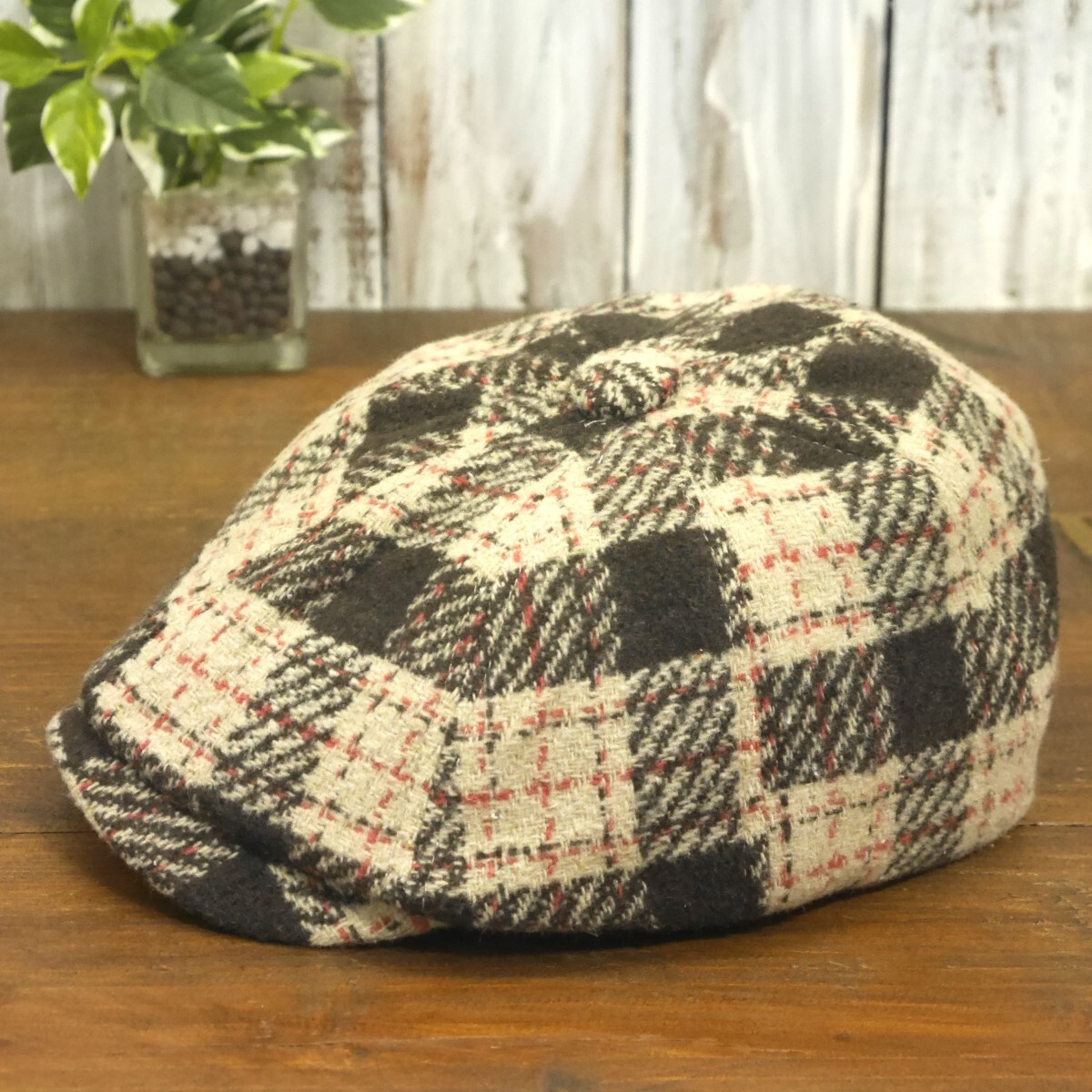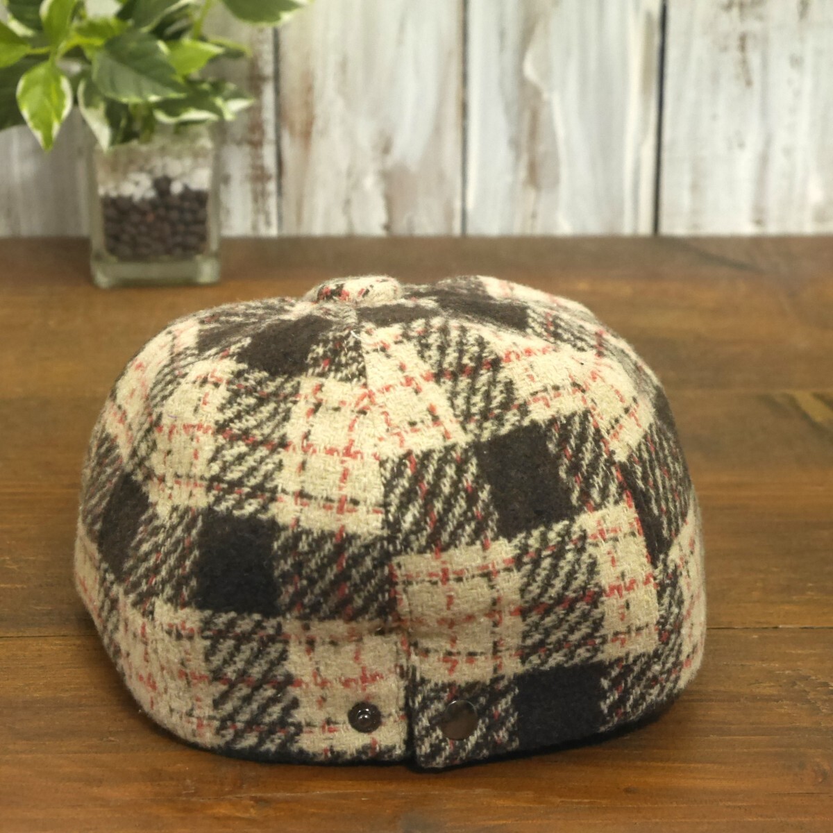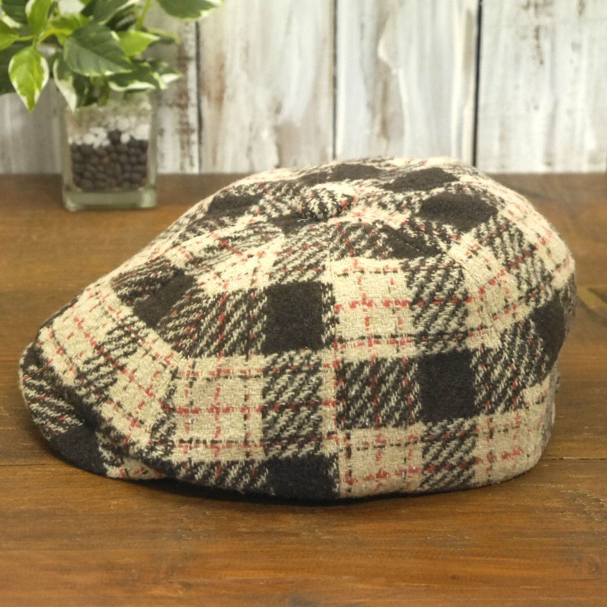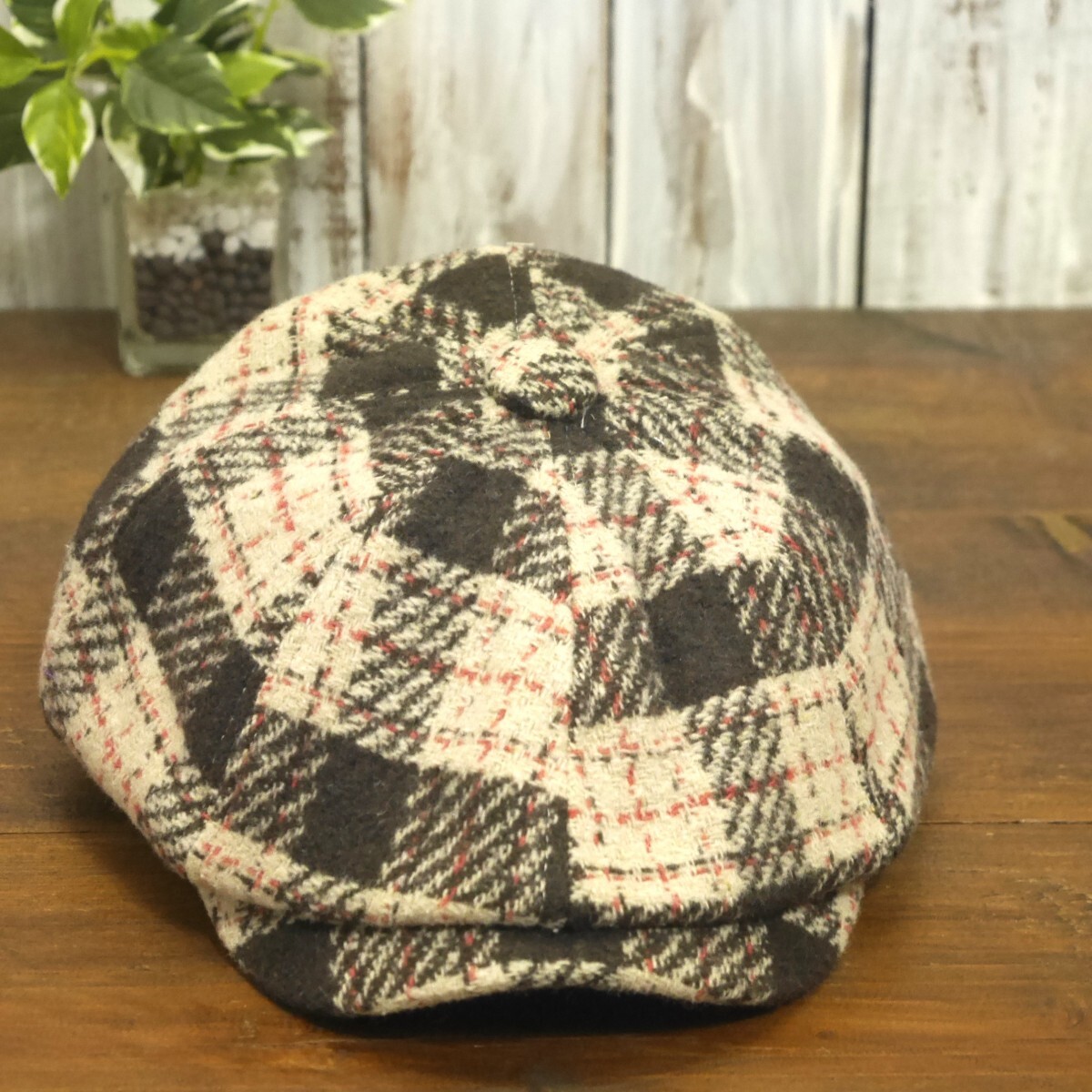 ウール キャスケットハンチング オーバーチェック ベージュ ブラウン シンプル ニュースペーパー サイズ調整可 送料\450 男女兼用