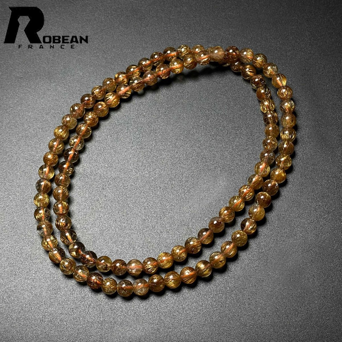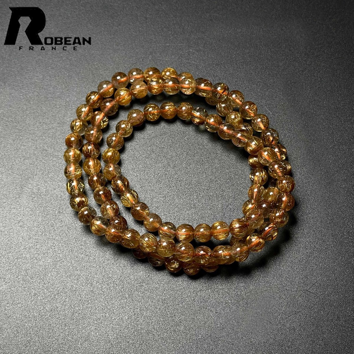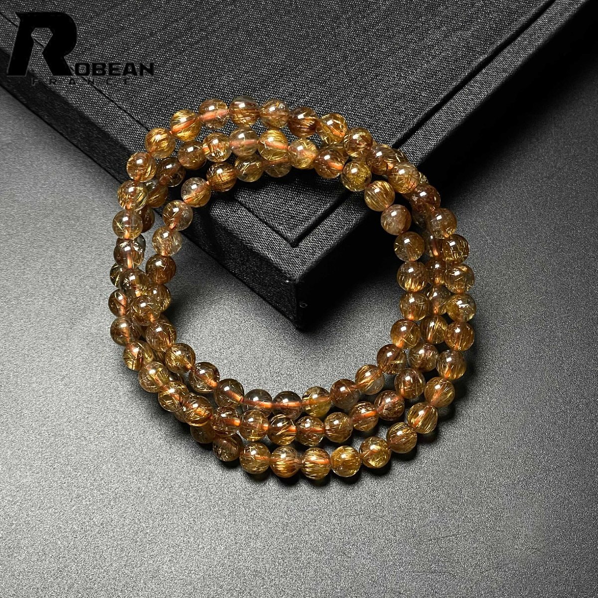 【限定1個】EU製 定価14万円★ROBEAN・銅髪ルチルクォーツ★3本巻きブレスレット パワーストーン 天然石 金運 お守り 5.5-5.8mm M085288