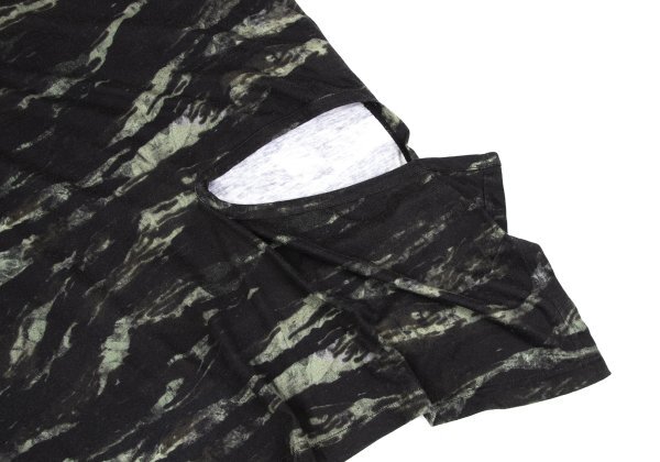 | グラウンド ワイGround Y ゼブラ柄サイドホールデザインTシャツ 黒カーキ3 |