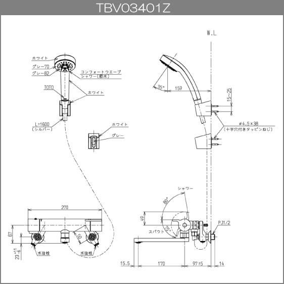 壁付サーモスタット混合栓 サーモシャワー コンフォートウェーブ 寒冷地仕様 TBV03401Z1 TOTO GGシリーズ