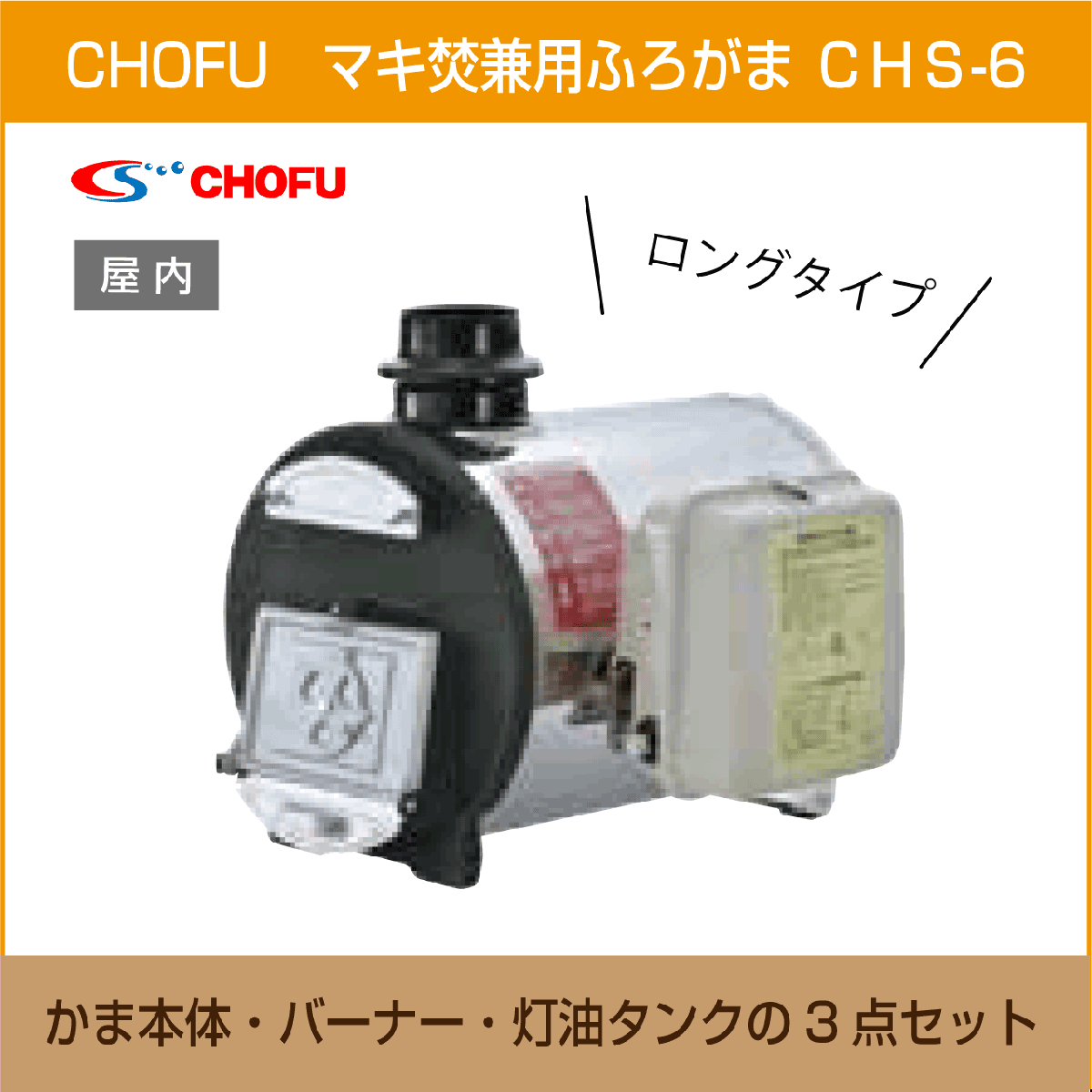 ★ CHOFU 長府製作所 マキ焚兼用ふろがま CHS-6 ロングタイプ 本体・バーナー・灯油タンク 3点セット ★