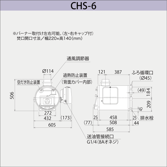 マキ焚兼用ふろがま 焼却兼用釜 CHS-6 ロングタイプ 本体・バーナー・灯油タンク 3点セット CHOFU 長府製作所