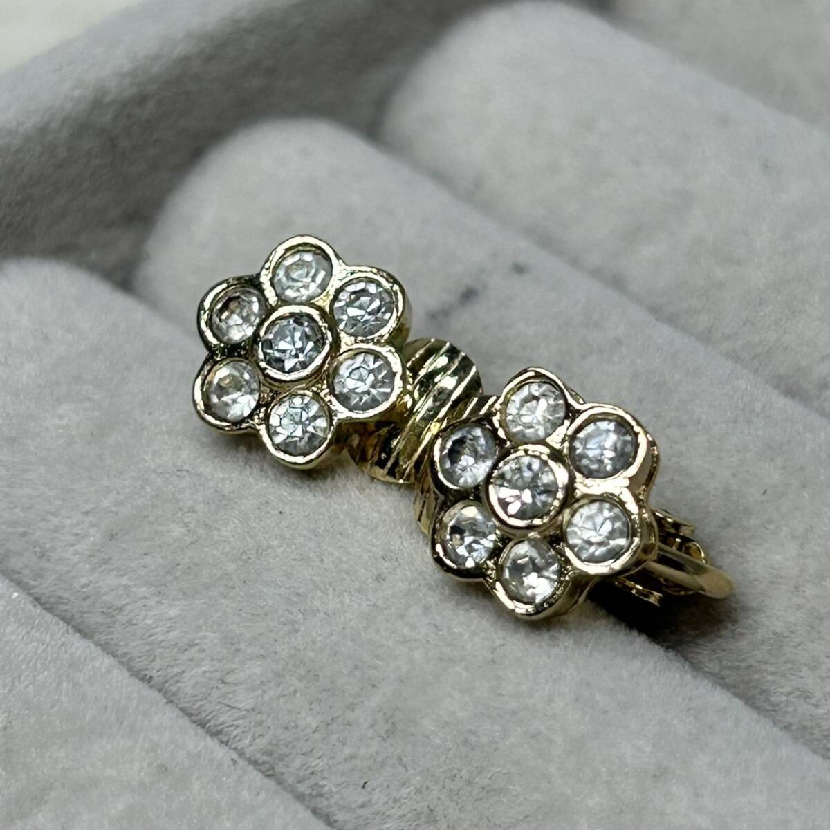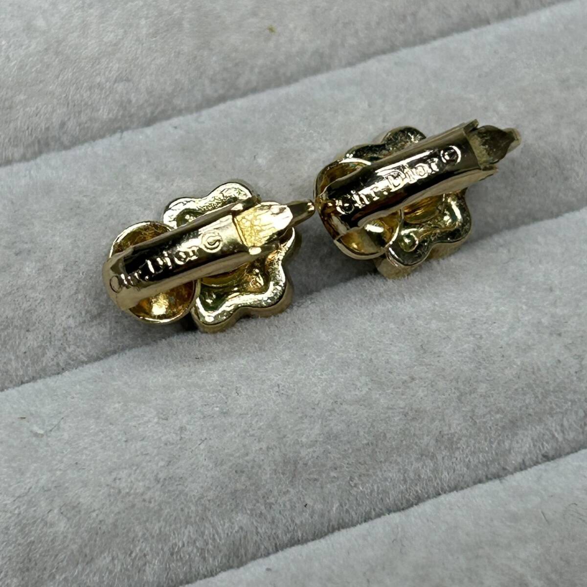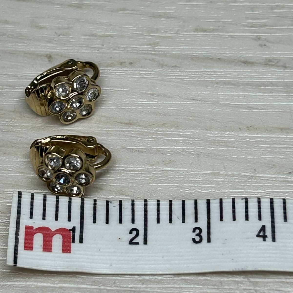 ●【YH-4201】保管品 Christian Dior イヤリング クリスチャン ディオール フラワー 花 ラインストーン ゴールドカラー アクセ ブランド
