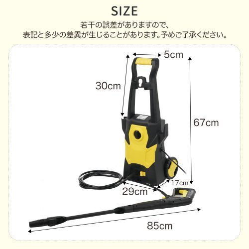 ◎04【コンパクト設計】オールインワン収納で見た目すっきり!長めのハンドルとキャスター付きで、移動もラクラク!【高圧ロングホース3m】高圧洗浄機を動かさずに、広範囲を一気に洗浄。水道から離れた場所もラクラクお掃除!