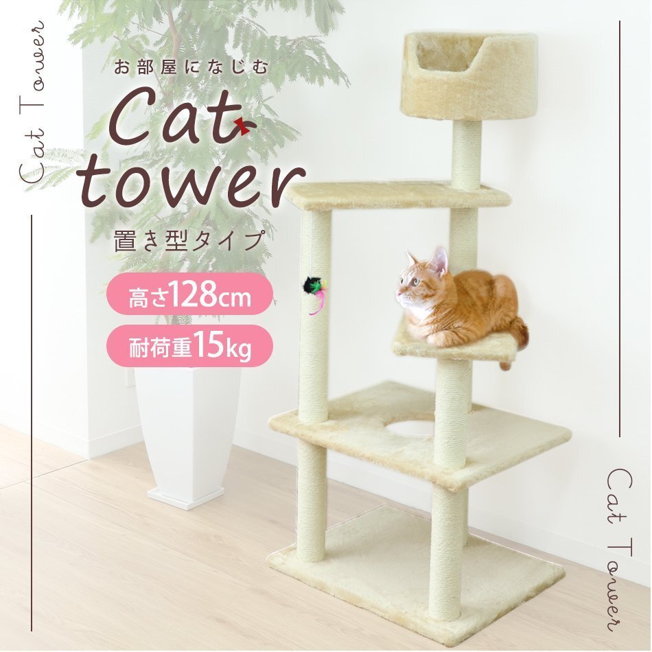 キャットタワー 置き型 爪とぎ 猫 タワー ねこタワー ベージュ |