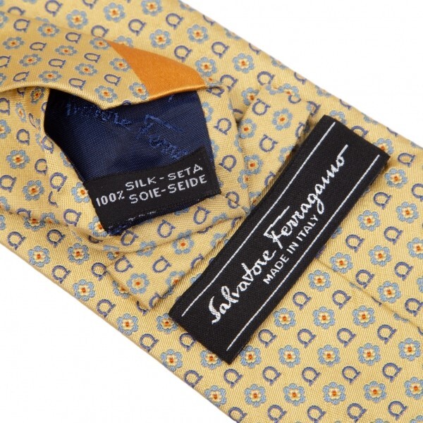 | サルバトーレフェラガモSalvatore Ferragamo 花柄ジャガードシルクネクタイ 黄水色 |