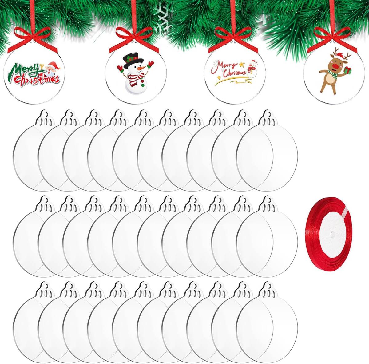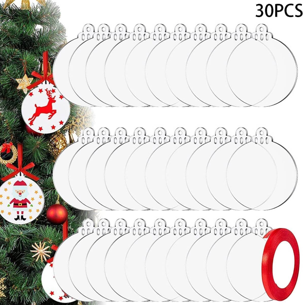 イラストを描こう クリスマスオーナメントアクリル製 30個セット 直径7.6cm 厚さ2mm 円形 アクリルクリスマス オーナメント 手作り