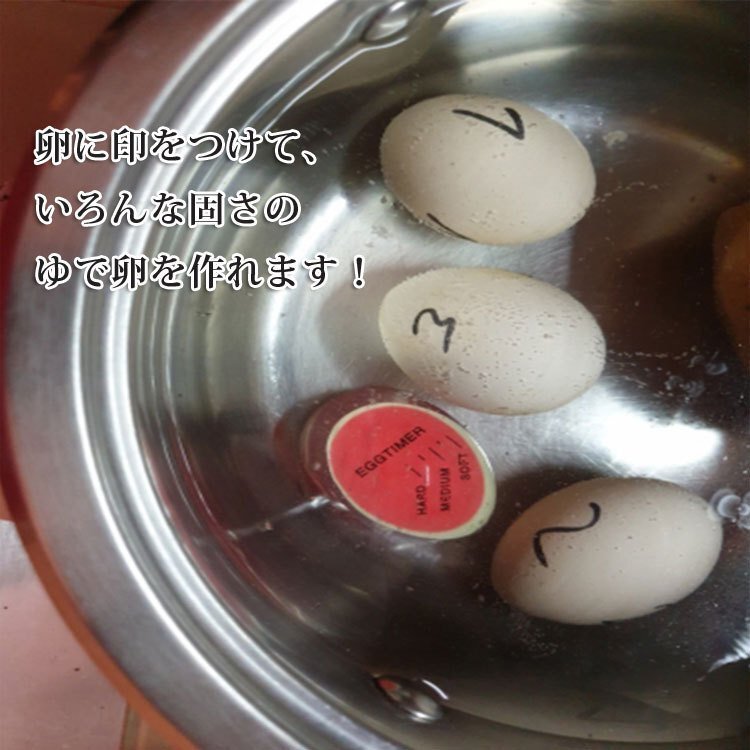 ◆エッグタイマー ゆで卵調理道具 色の変化で卵のゆで具合がひと目でわかる 半熟玉子に ゆでたまご用温度計 ソフト ミディアム ハード キッチンツール 時短 便利 EGGTM013