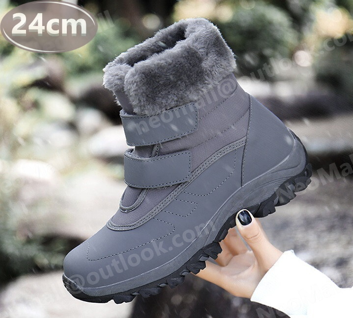 レディース スノーシューズ 【971】 グレー 24.0cm ムートンブーツ スニーカー ウィンターブーツ 裏起毛 防水 防寒 防滑 冬用靴 綿靴