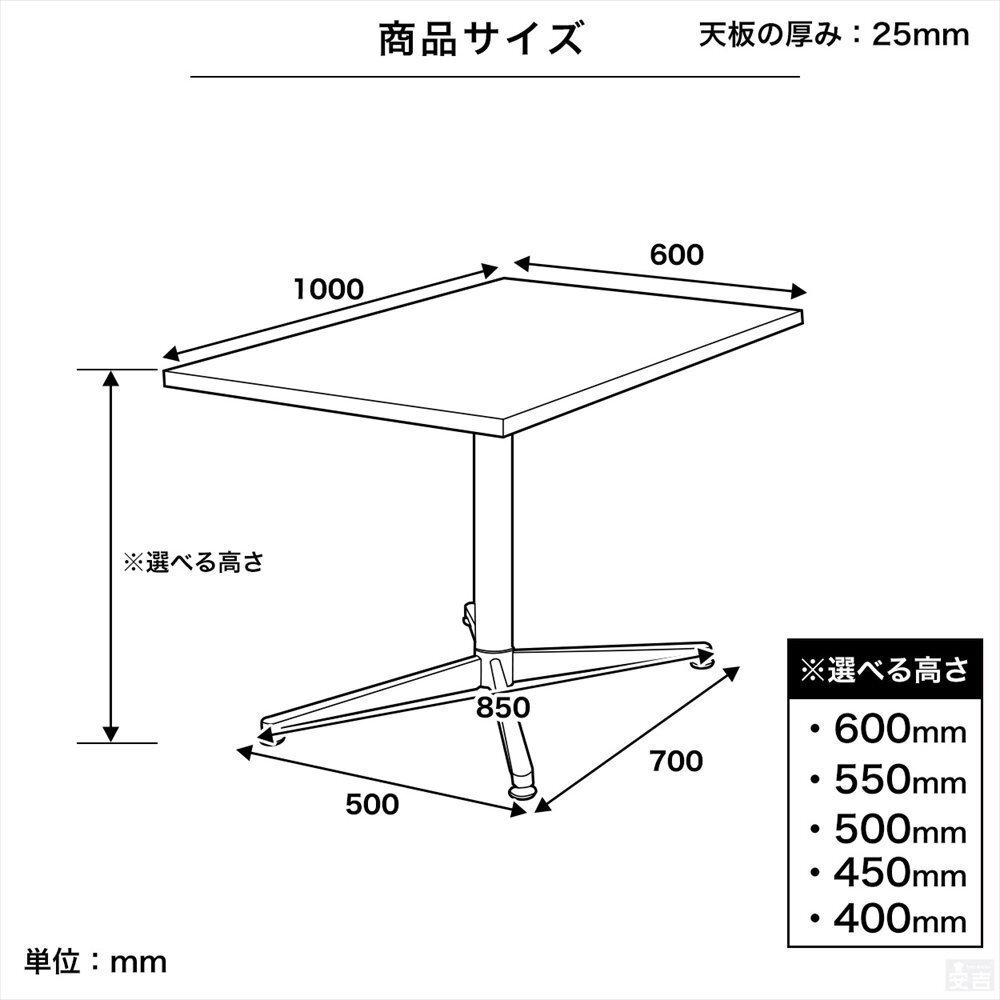 | 材質 | 【天板】積層合板/表面・裏面メラミン樹脂化粧繊維板 【脚部】スチール(粉体塗装) |