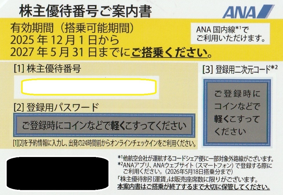 最新  全日空 ANA 株主優待券 株主優待券 1枚です。有効期限 2027年5月31日迄です。 また、お急ぎであれば、対応いたします。