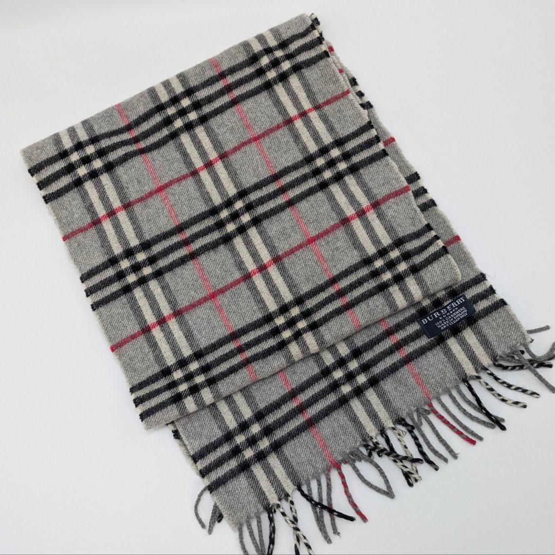ブラックとグレーに赤ラインの入ったノバチェック柄マフラーです。
