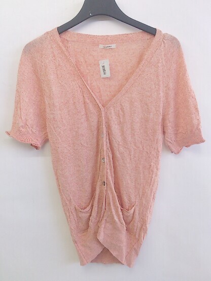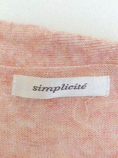 ◇ Simplicite シンプリシテェ リネン混 薄手 半袖 ニット カーディガン オレンジ レディース P