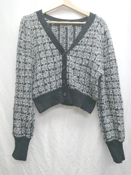 ◇ NICE CLAUP ナイスクラップ 長袖 ニット カーディガン サイズF グレー マルチ レディース P