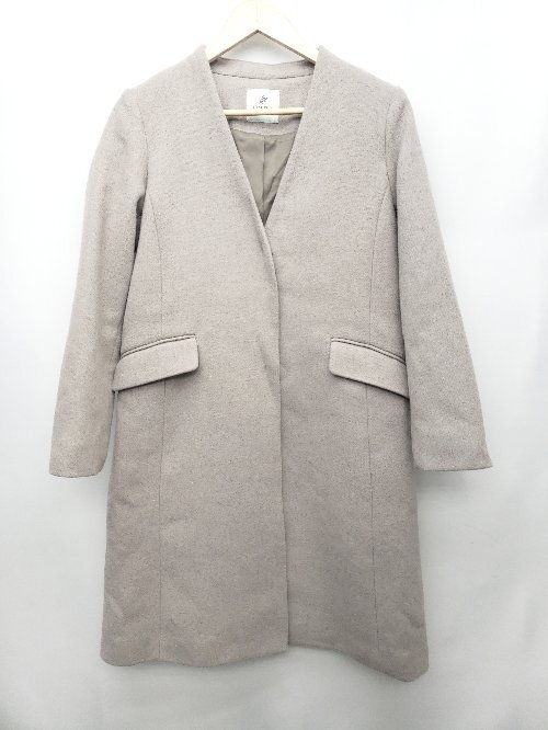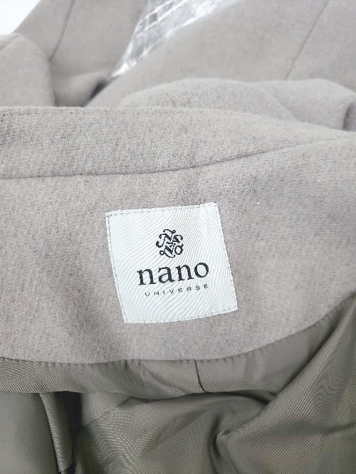 ◇ nano universe ナノユニバース ノーカラー 無地 シンプル 長袖 コート サイズF グレー レディース P