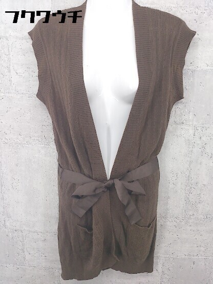◇ ◎ green label relaxing UNITEDARROWS リネン混 ベルト付き ノースリーブ カーディガン ブラウン レディース