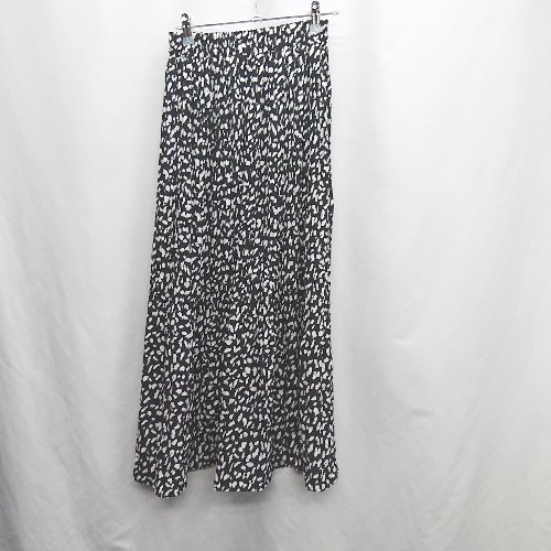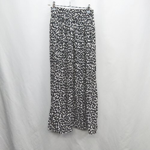 ◇ Φ classicalelf ウエストゴム 総柄 ロング丈 フレア スカート サイズLL-3L ブラック ホワイト レディース E