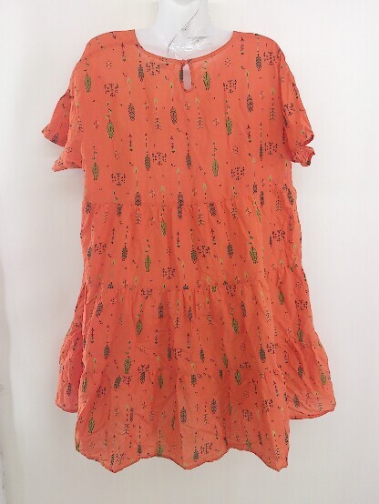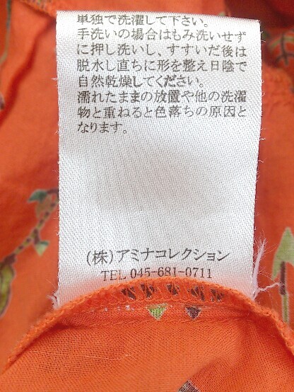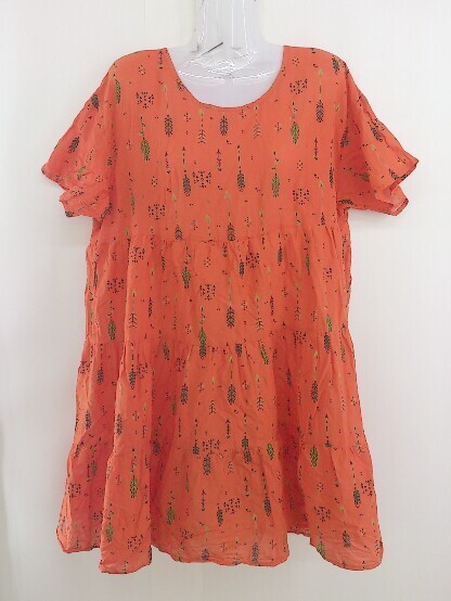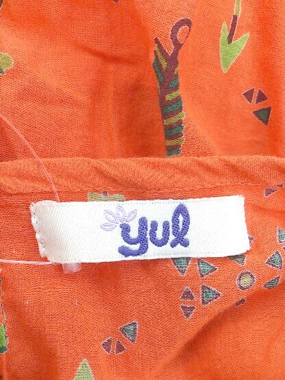 ◇ yul ヨル 総柄 半袖 膝丈 ワンピース オレンジ レディース