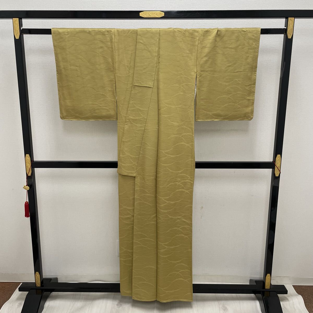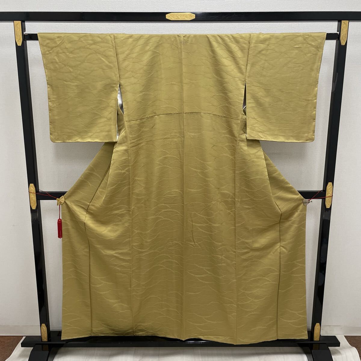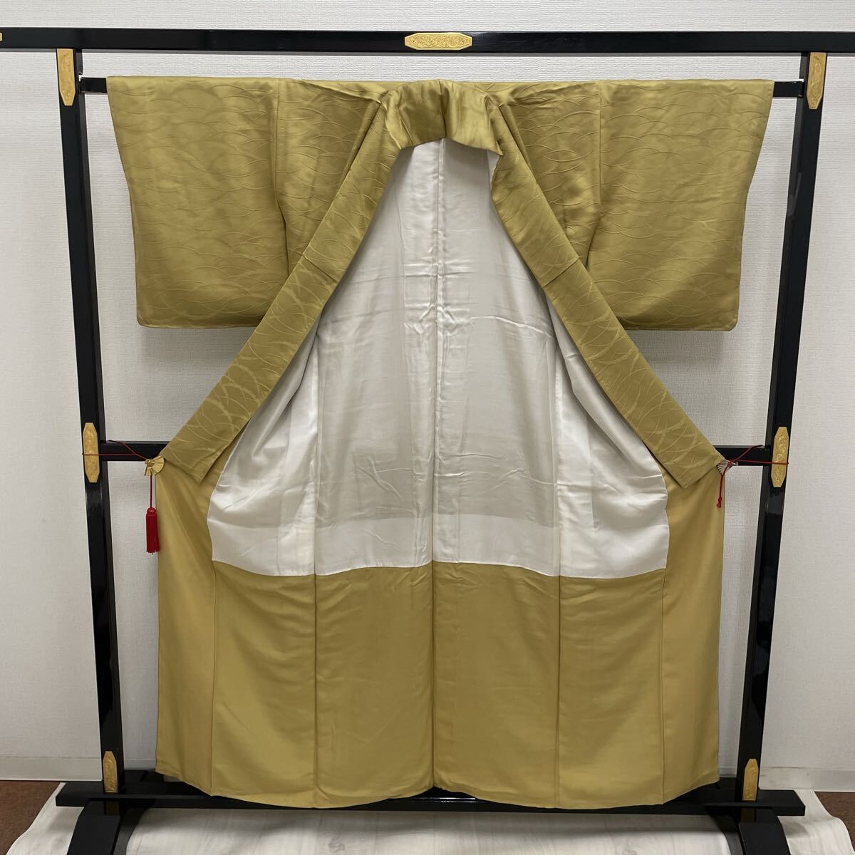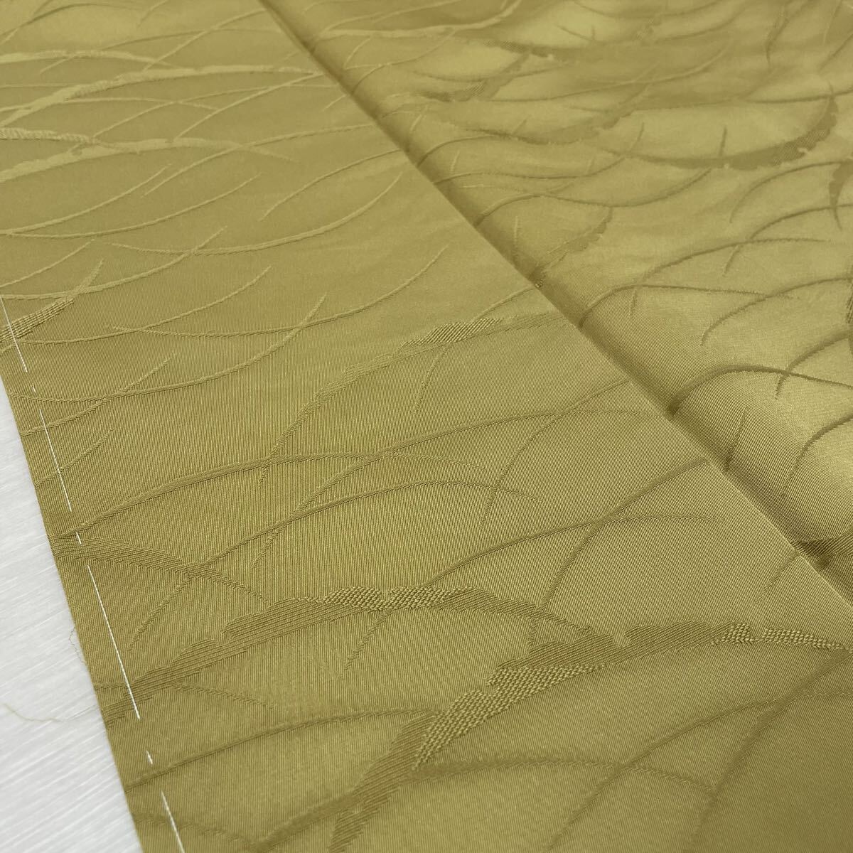 色無地 露芝模様 上品な辛子色 着物 正絹 一つ紋 W-8314