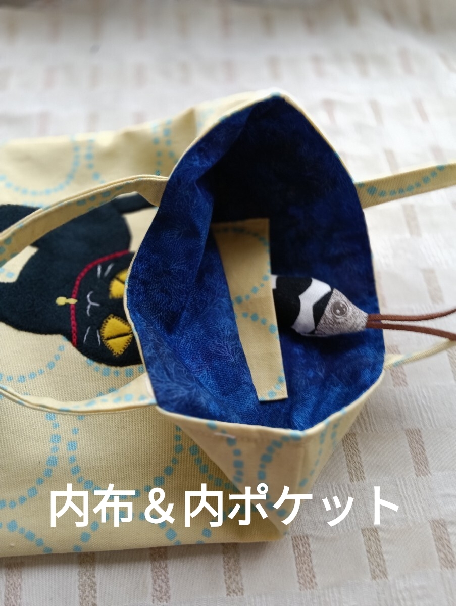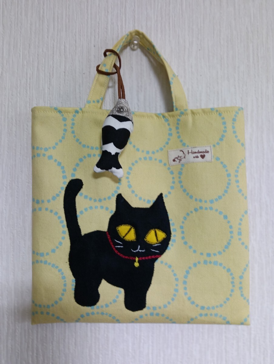 可愛い猫ちゃんのアップリケ入ミニバッグです。お散歩のお供にどうぞ。プレゼントとしても喜ばれています。