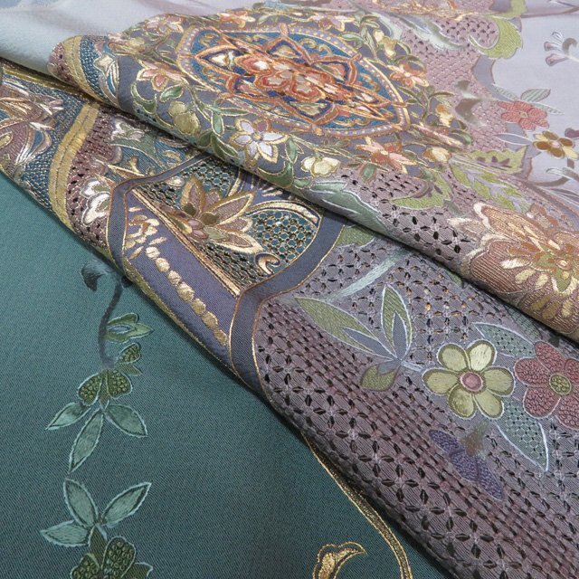 | サイズ 1848cm x 37cm 素材 正絹 商品ランク C ●お色 水色 緑系色 解き反物になります。 所々ヤケ・シミがございます。 一部商品は実店舗・他サイトでも並行して販売しておりますので売り切れの際はご了承ください。 その他多数出品中 oga | ||||||