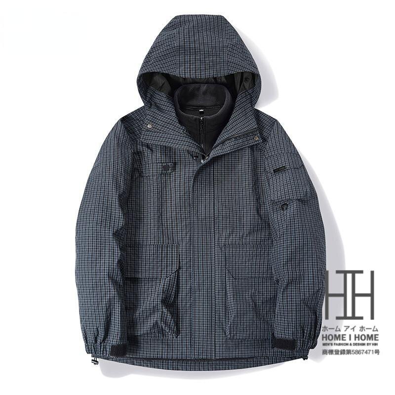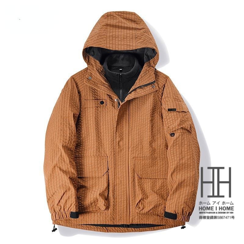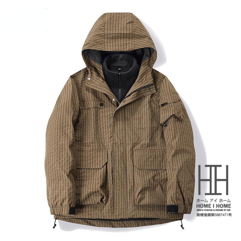 マウンテンパーカー メンズ 登山服 3way ボアライナー付き 取り外し可能 フリースジャケット 裏ボア フード 防風 防寒 おしゃれ チェック柄 秋 秋服 冬 冬服