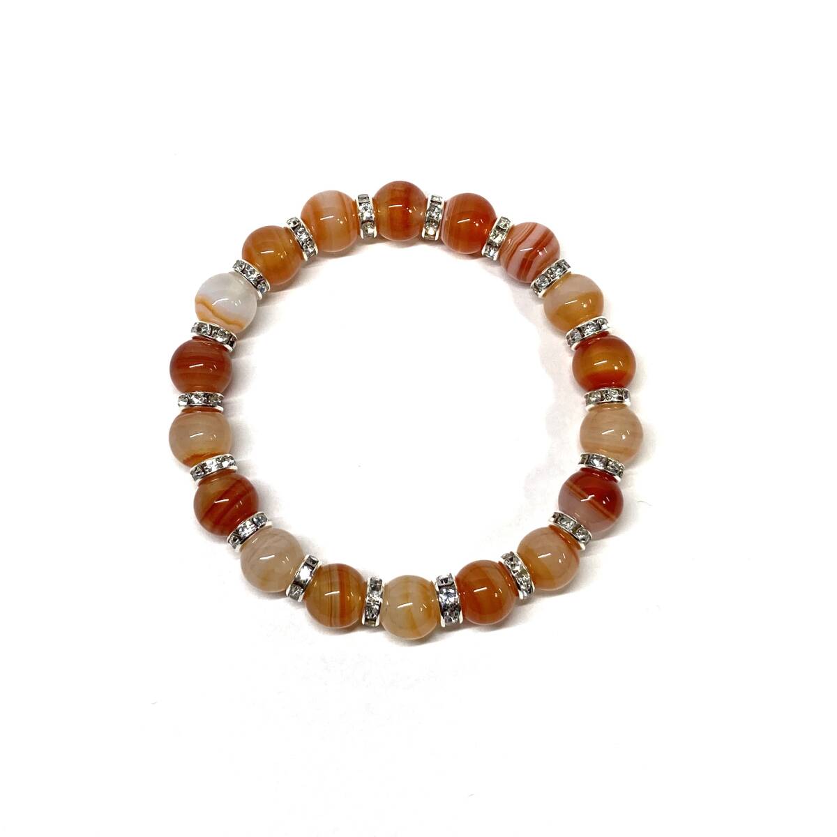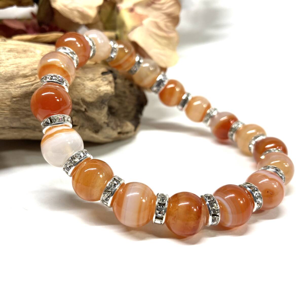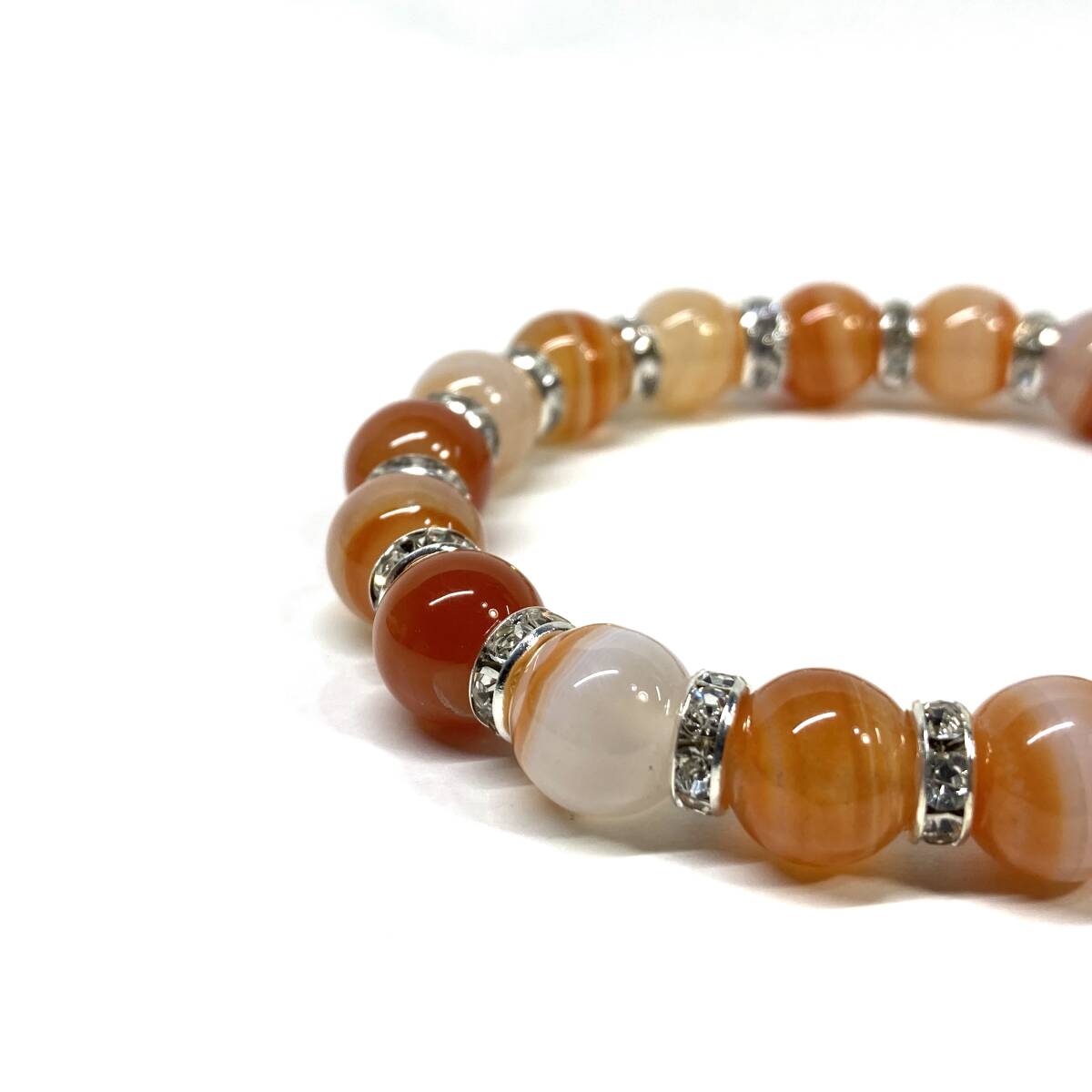 こちらは、10mm玉のカーネリアン・サードニクスを使用したパワーストーンブレスレットです。シンプルなデザインは、男女問わずどんなコーディネートとも合わせ易いブレスレットです。サイズは内周約18cmです。(サイズ変更の場合は取引ナビにてご連絡をお願いします。) 数に限りがございますので気になる方はお早めにどうぞ。