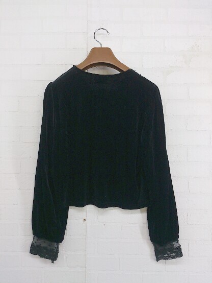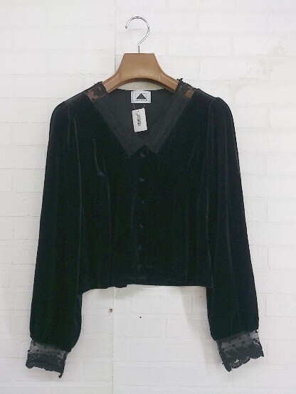 ◇ ABITOKYO アビトーキョー ベロア風 スカラップ レース 長袖 シャツ ブラウス ブラック レディース P