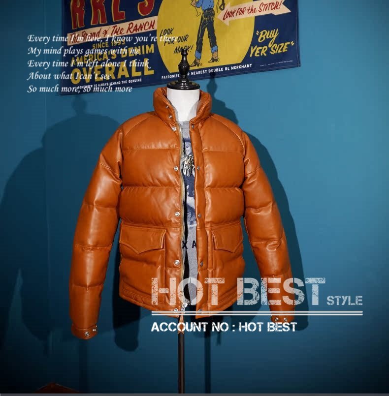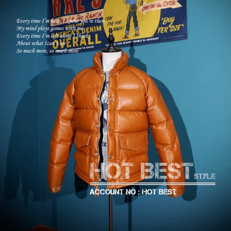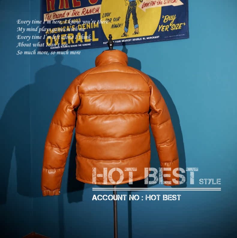 シープスキン オレンジ シングルライダース HERO レザーダウンジャケット メンズ 革ジャン イタリアンレザー 羊革 Y1382/S~3XLサイズ指定可