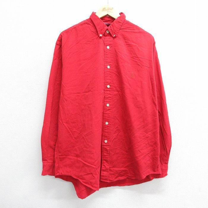 【商品名】 XL★古着 ノーティカ 長袖 ブランド シャツ メンズ 90年代 90s ワンポイントロゴ 大きいサイズ コットン ボタンダウン 赤