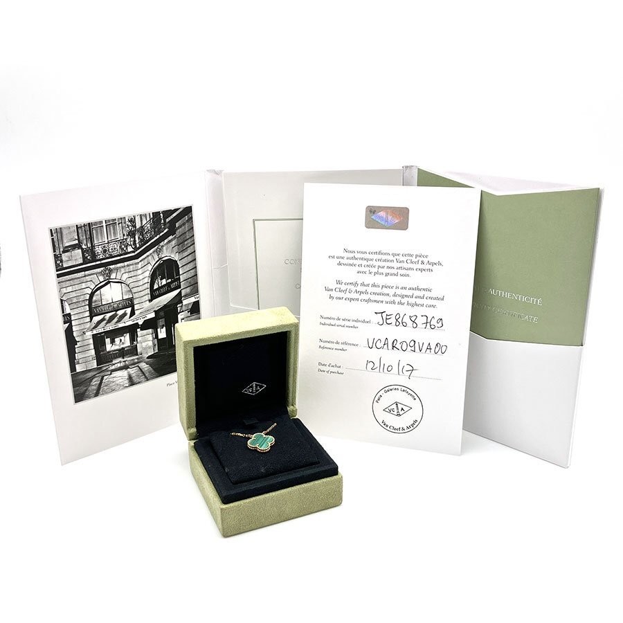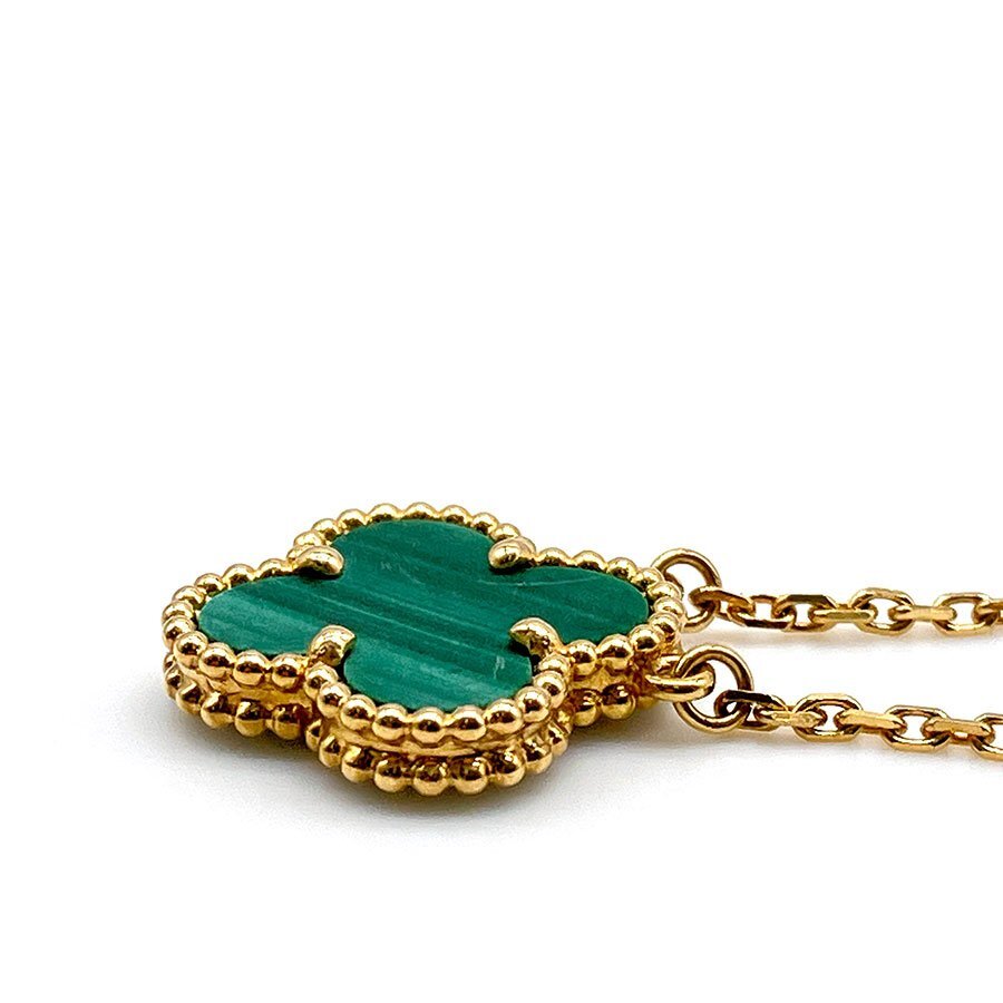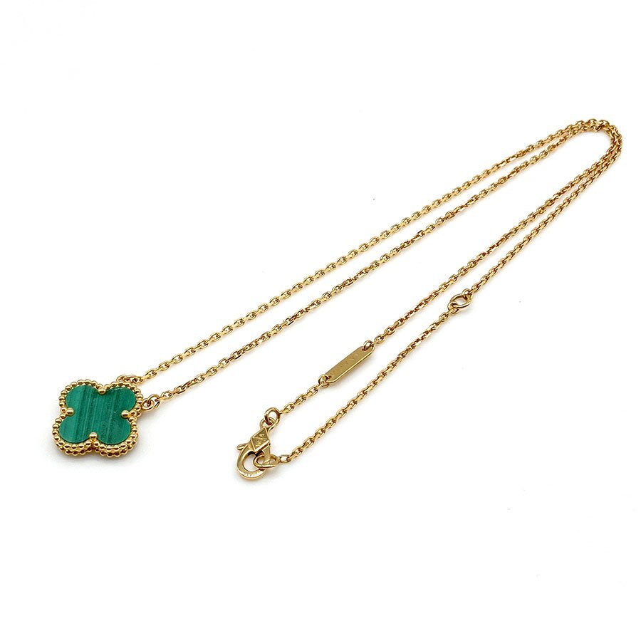 g21584 Van Cleef & Arpels ヴィンテージアルハンブラ K18YG マラカイト ネックレス USED 美品 5.4g 42cm ケース・保証書付