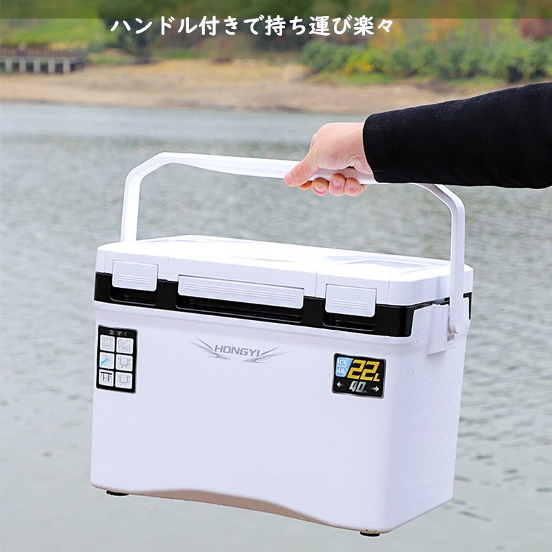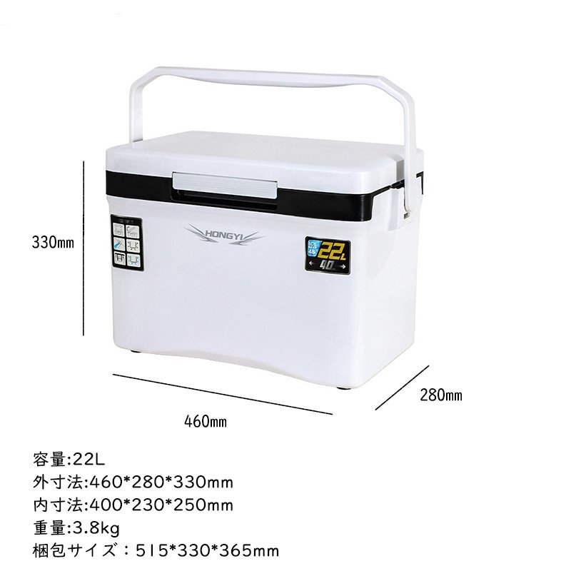 釣り用クーラーボックス 容量22L 座れる頑丈マッスルボディ 防水 断熱材保温保冷 ハンドル/水栓/肩ベルト付き 天窓なし 釣り保冷力48h