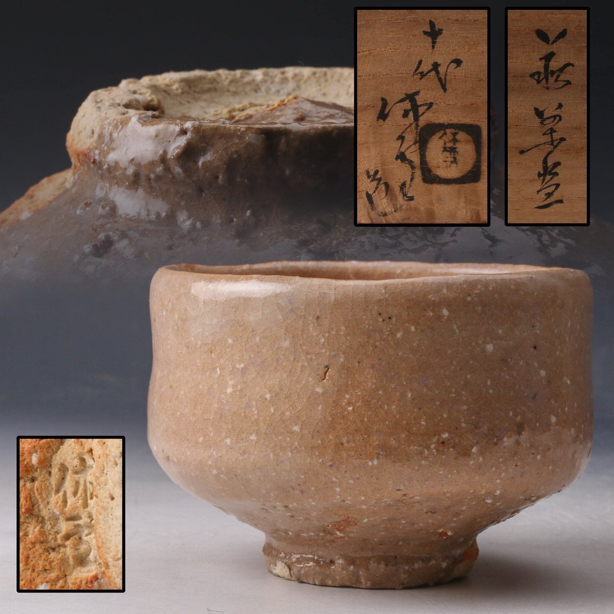 【佳香】人間国宝 十代 三輪休雪(休和) 萩茶碗 共箱 共布 栞 茶道具 本物保証