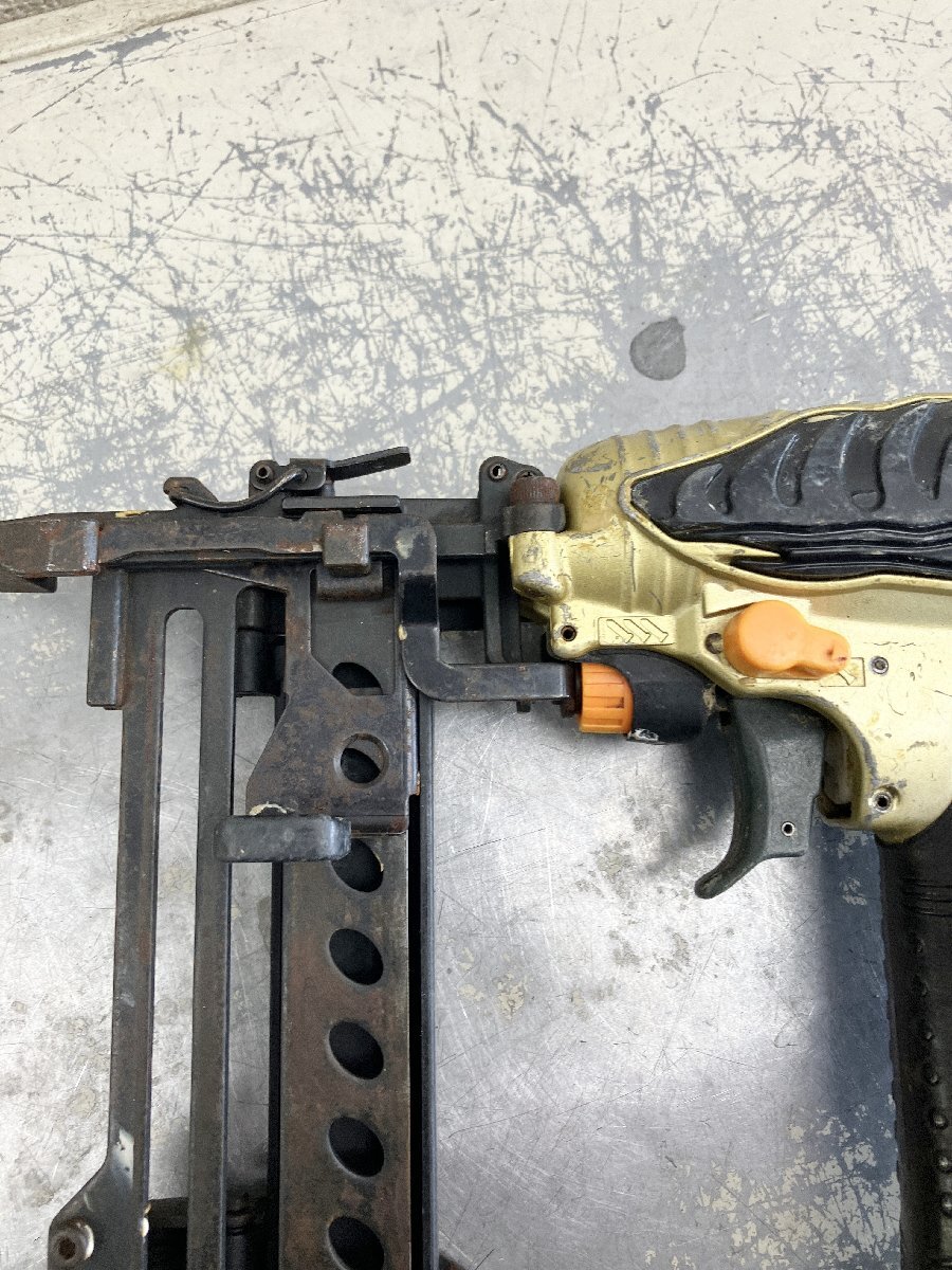 商品説明 動作確認済みです。 日立 50mm 高圧 フロア用タッカ N5004HMF 本体のみの中古出品となります。 傷や汚れがあり使用感があります。 写真が全てです。 【仕様】 使用空気圧力1.76~2.26MPa (18~23kgf/cm2) 空気消費量1.0L ()/本(1.96MPa(20kgf/cm2)時) 使用ステープル装てん数:115本(1連+40本) 長さ:25~50mm 質量1.4kg ●当店出品商品におきまして、店舗での併売を行っているお品物がございます。 ご落札のタイミングによってはお品物のご用意が出来ない場合がございます。 店舗での販売が優先となりますので、あらかじめご了承ください。 ●簡易的な清掃はしておりますが、取り切れない汚れ・社名跡がある場合がございます。 ●リユース品ですので細かな傷・打痕・サビ・塗装剥がれ・変色等があります。 ●神経質な方・完璧なものをお求めの方は入札をお控えください。 ●弊社ではお値引き価格交渉等はご対応を行っておりません。 ●即決価格が設定されてい商品はオークション形式のみでの販売となります。 ●外国籍の方と以前のお取り引きでトラブルが発生した為、日本語が細かく理解出来ない方は入札をご遠慮下さい。 ●Please refrain from bidding if you are unable to understand Japanese in detail, as we had trouble with a previous transaction with a foreign national. | ||