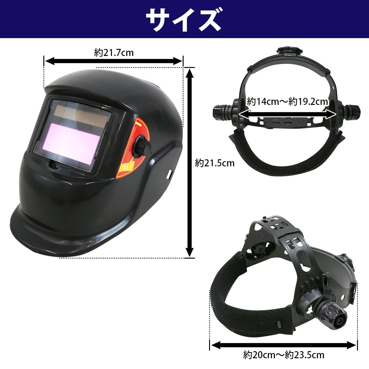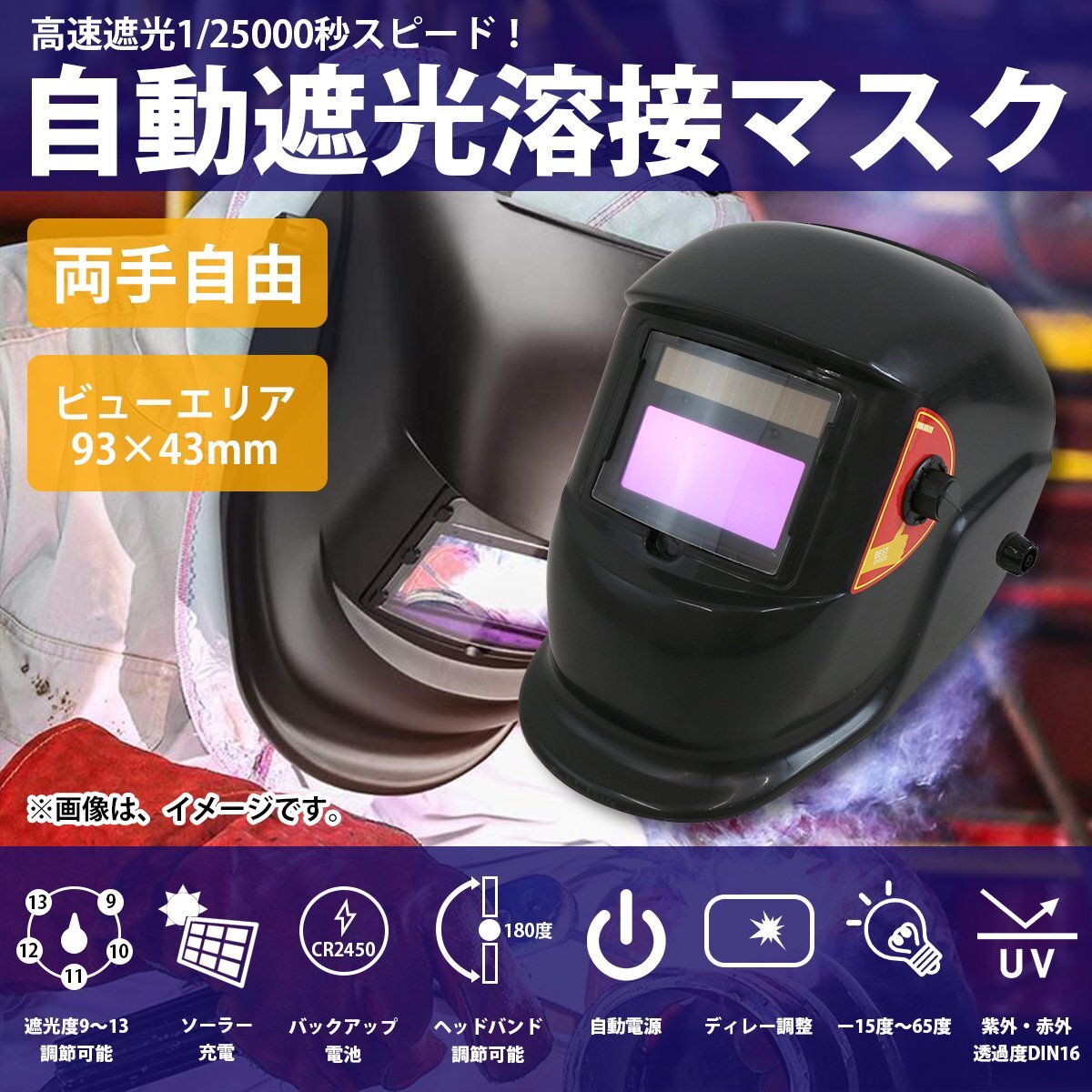 自動感光式溶接面 溶接 マスク 遮光面 アーク溶接 高速遮光 視界93×43mm アークマスク ソーラー電池 感度調節 自動電源 黒