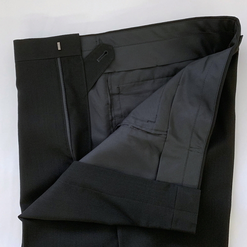 ■スラックス:ワンタック、脇左右斜めポケット、アジャスター付、後左右ポケット、ヒザ裏付、スラックスの裾は半仕上げです