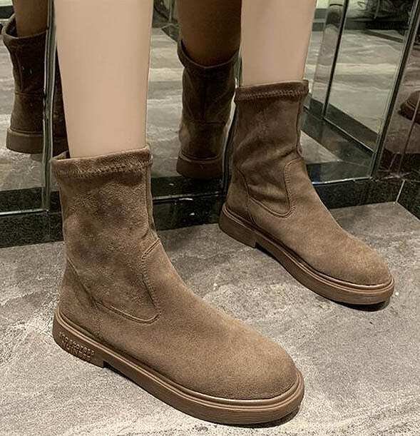 レディース 靴 ブーツミディミドル ショート ラウンドトゥ フラット ぺたんこ 黒 カーキ 25cm 24.0cm(38) カーキ