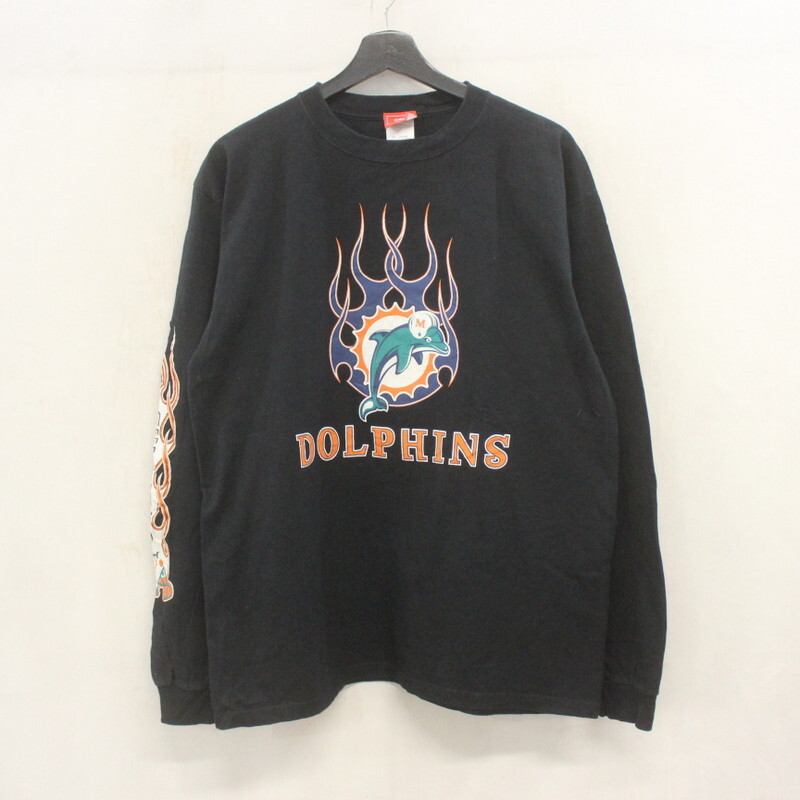 商品名 n123 2000年代製 NFL DOLPHINS ドルフィンズ ロンT■00s 表記Lサイズ ブラック フレイム 古着 アメカジ ストリート ファイヤー 90s 80s 黒