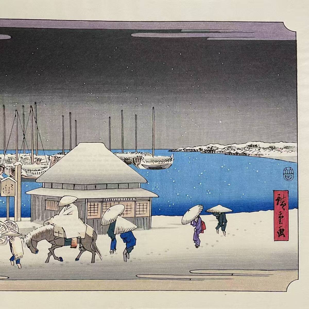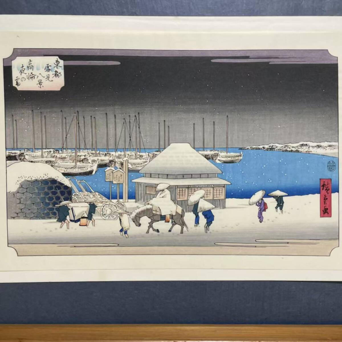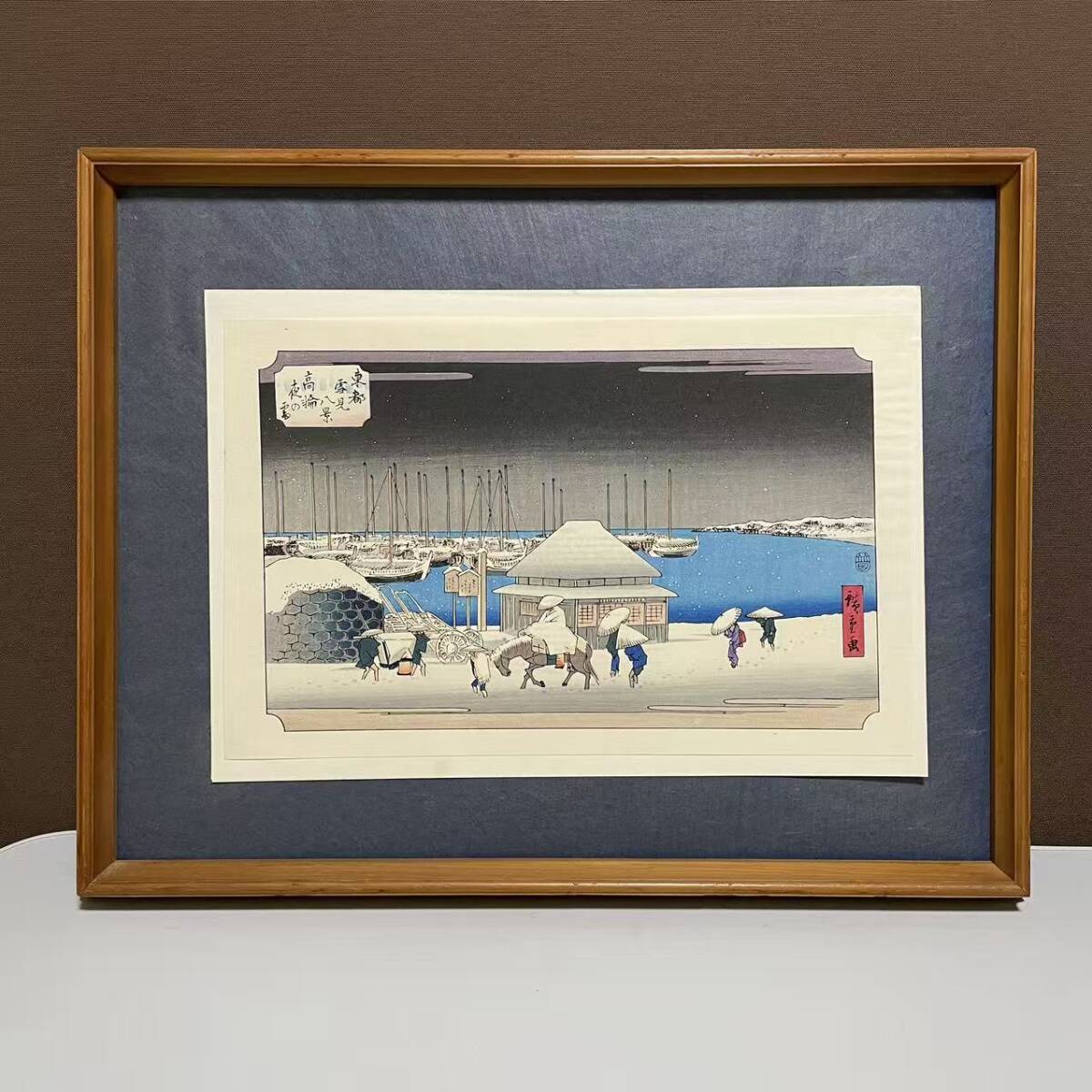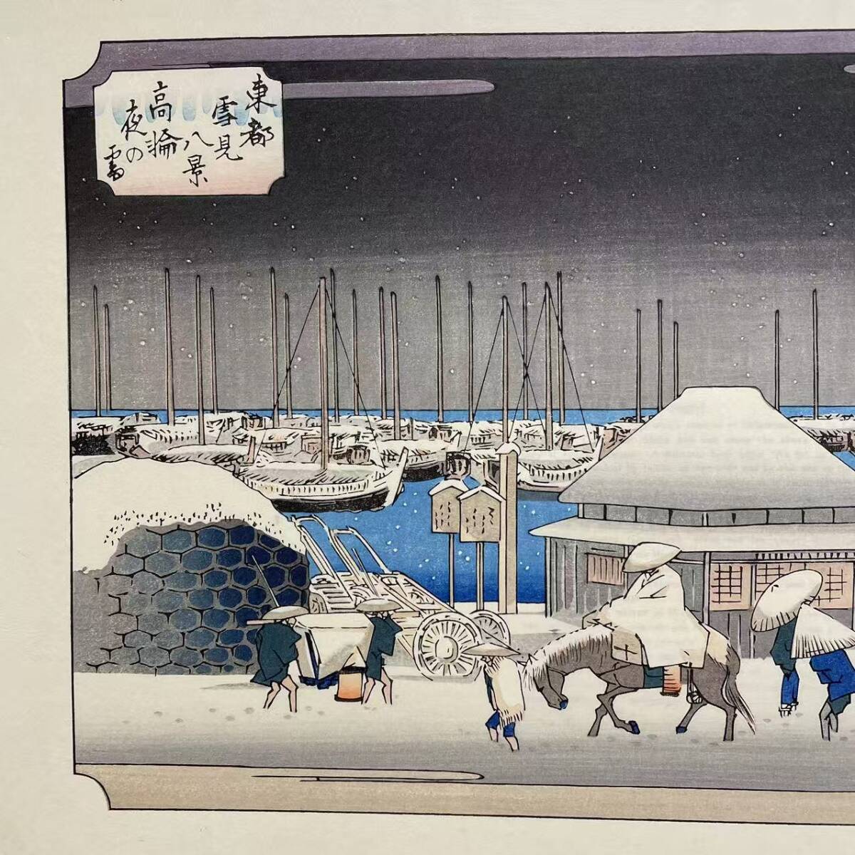 手摺版画 歌川広重 東都雪見八景 高輪・夜の雪 浮世絵 額装