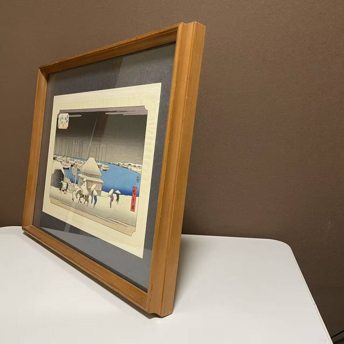 手摺版画 歌川広重 東都雪見八景 高輪・夜の雪 浮世絵 額装